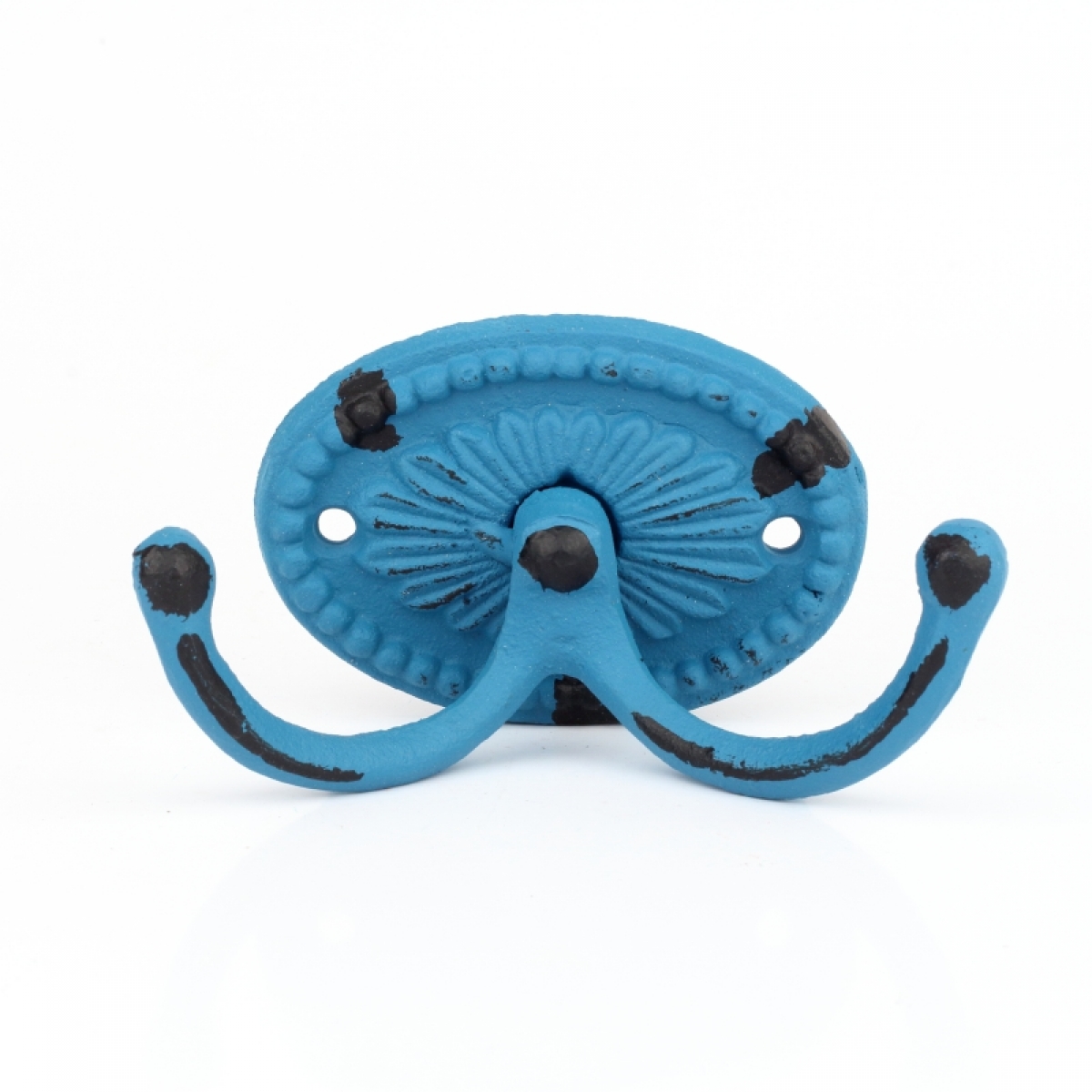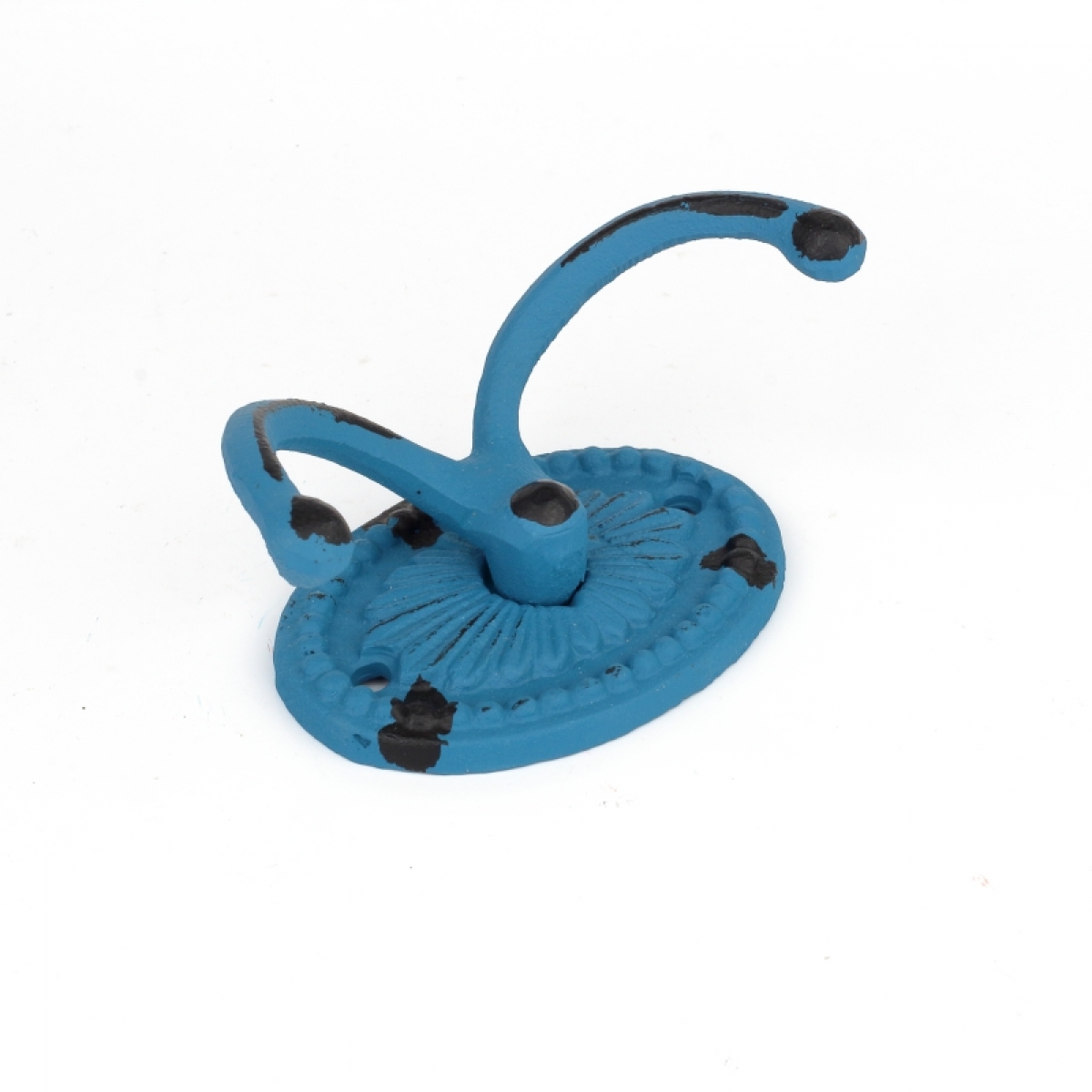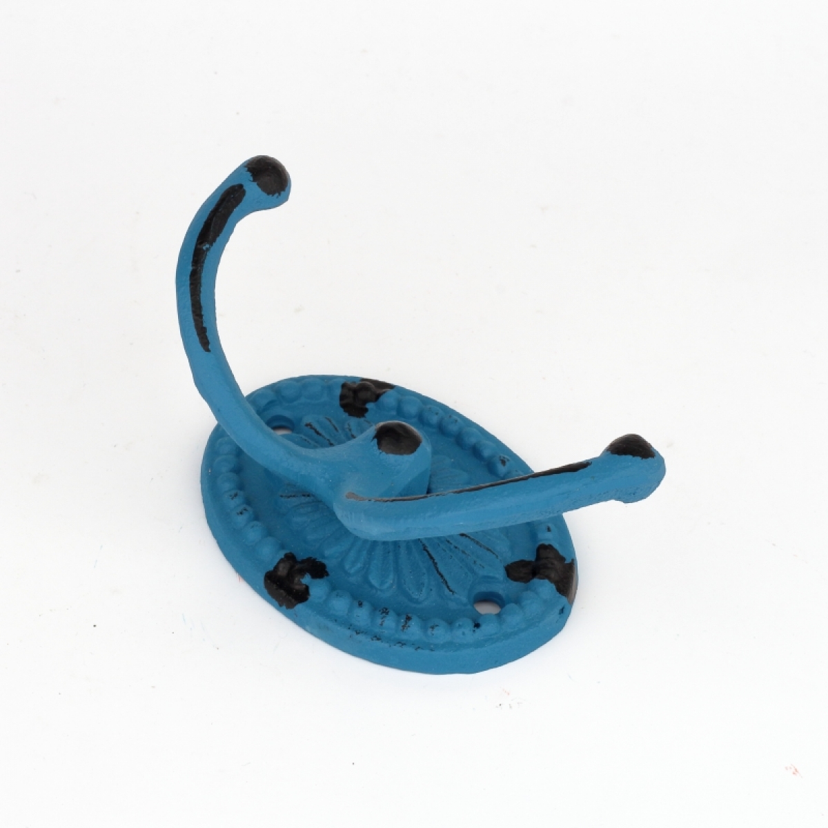 Liatinový retro vešiak na uteraky dvojháčik oválný modrý
