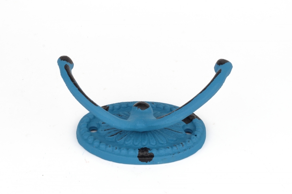 Liatinový retro vešiak na uteráky dvojháčik oválny modrý je praktickým pomocníkom snáď do každej mítnosti v dome. Dvojháčik oceníte na bundy v predsieni aj v kúpeľni na uteráky.