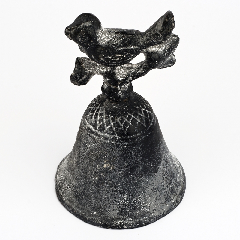 Průměr zvonečku 75mm, srdce zvonu litina a výška po hlavičku ptáčka 120mm.