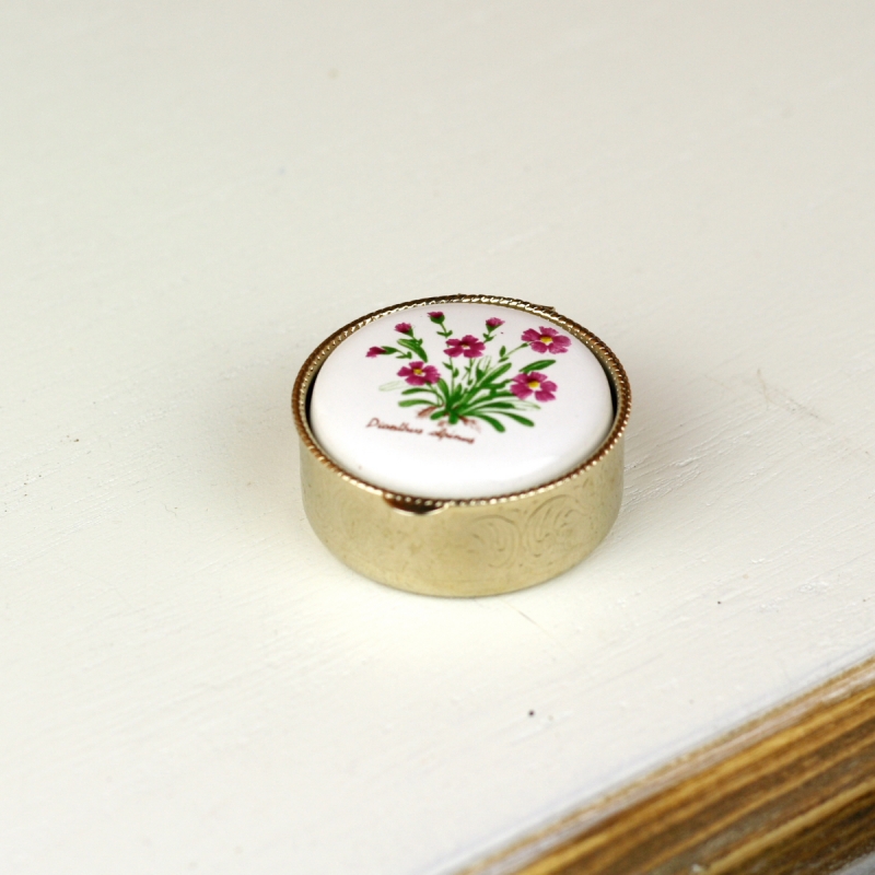 Liekovka kvetinová guľatá v kombinácia zlatej krabičky a krásne kvety na bielom podklade pôsobí veľmi nežne. Najmä dámy teda budú potešení touto malou krásou.
