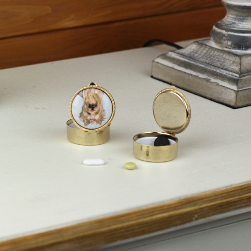 Veko krabičky je ozdobené motívom psa. Vnútri je vložená plastová miska, ktorú možno ľahko vytiahnuť.