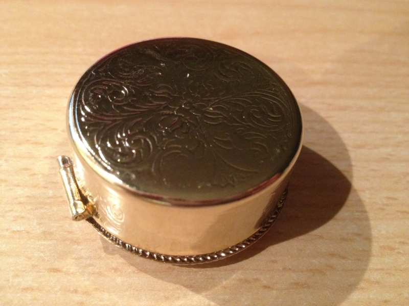 Rozměry: průměr 4cm. výška 1,5cm. plechový obal