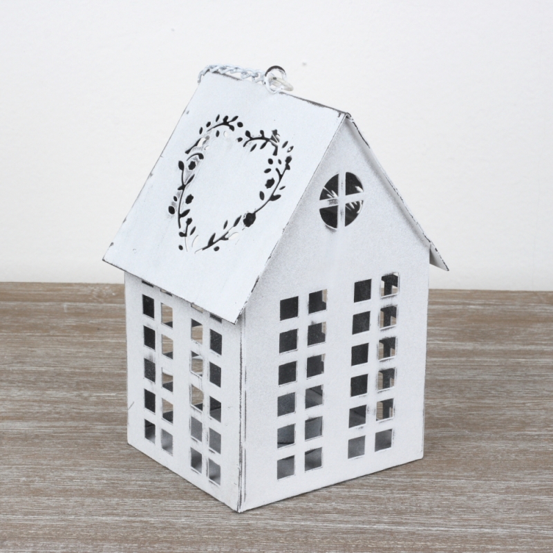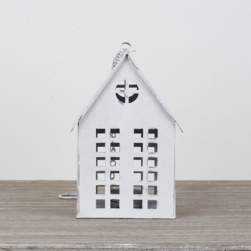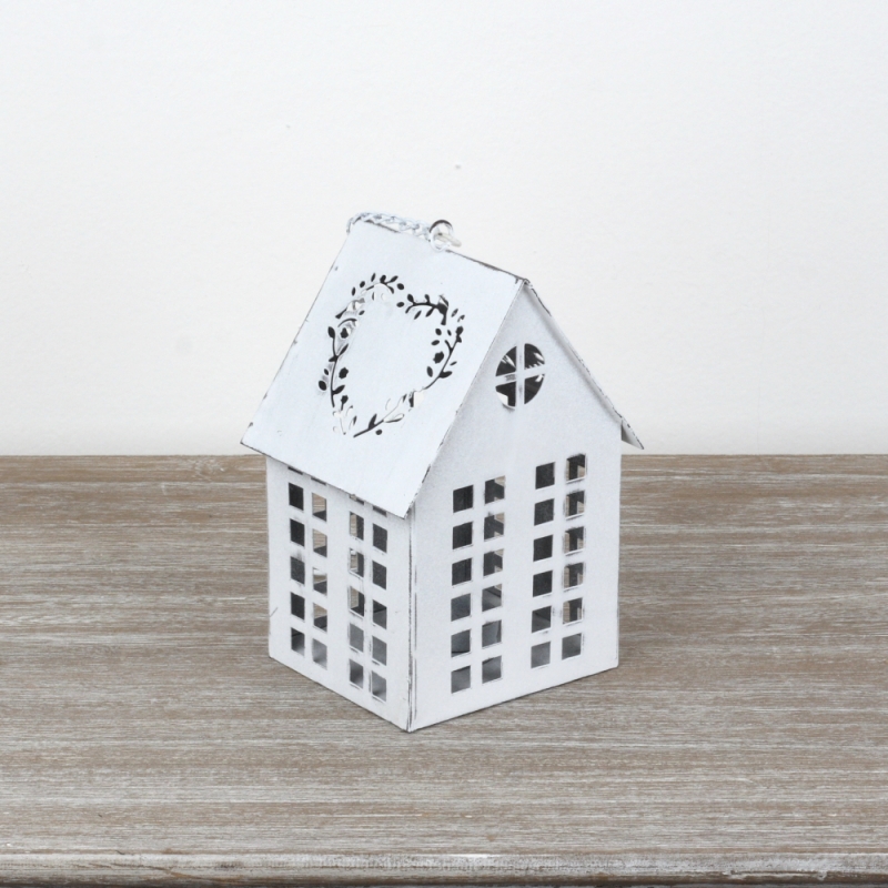 Lucerna domček biely 17x12x10cm