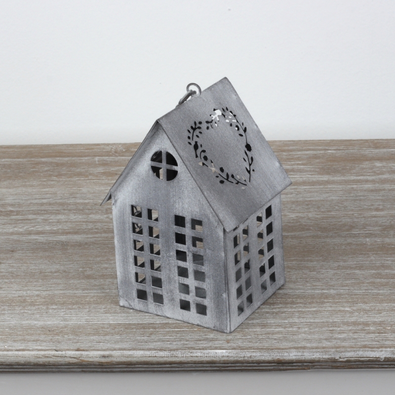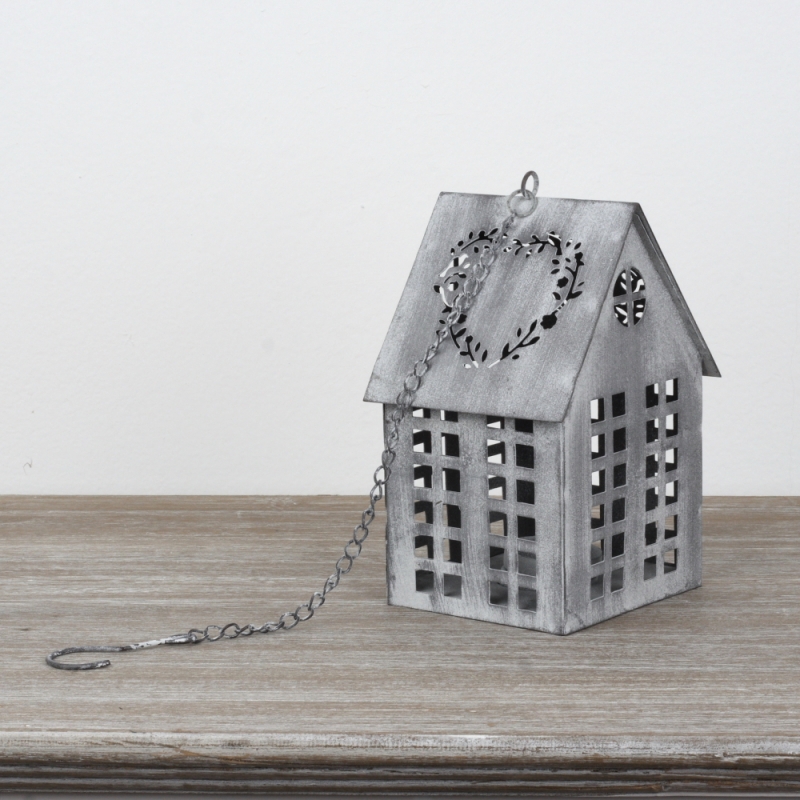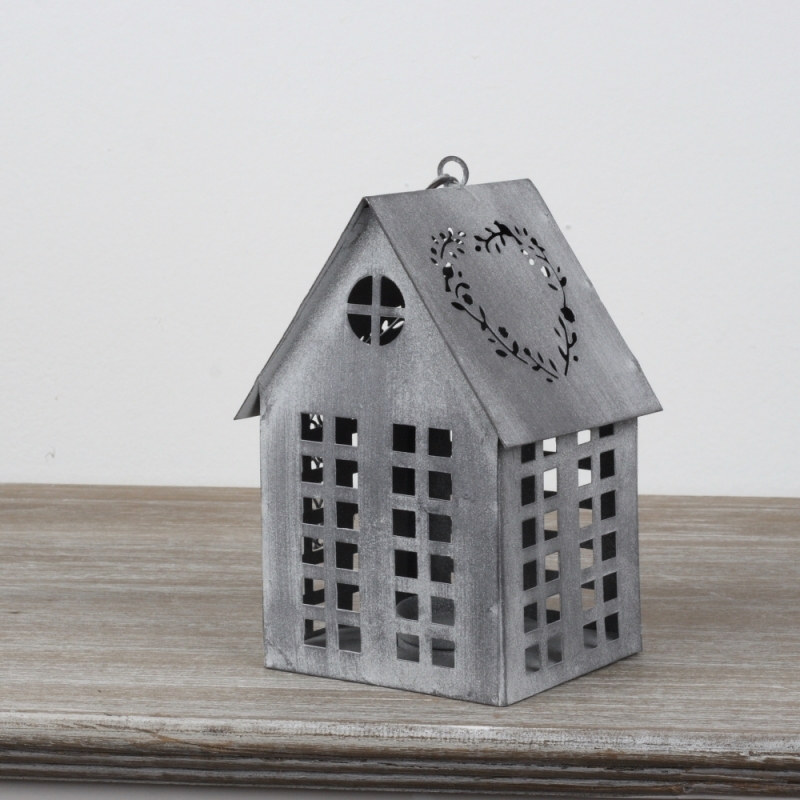Lucerna domček sivý 17x12x10cm