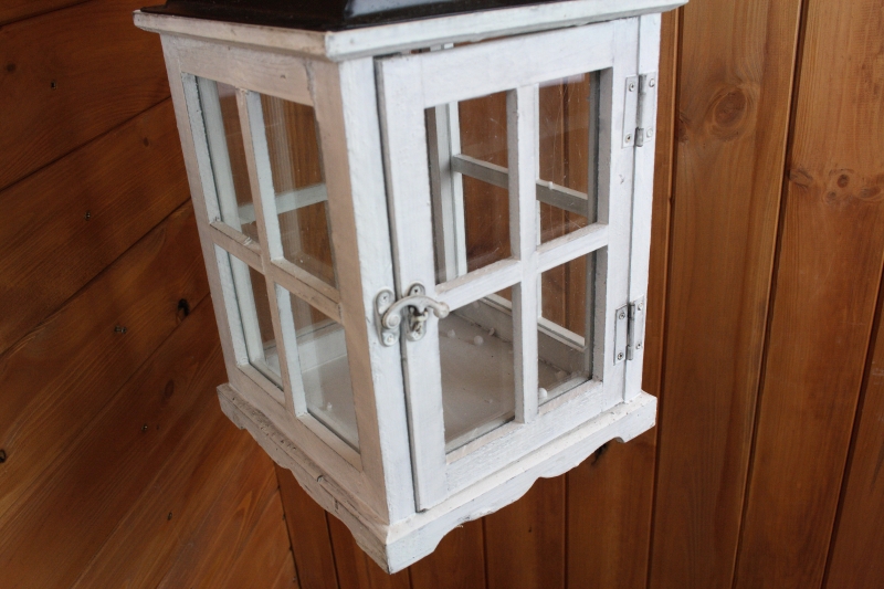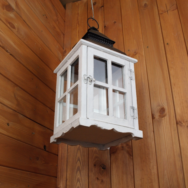 Lucerna drevená biela 43cm