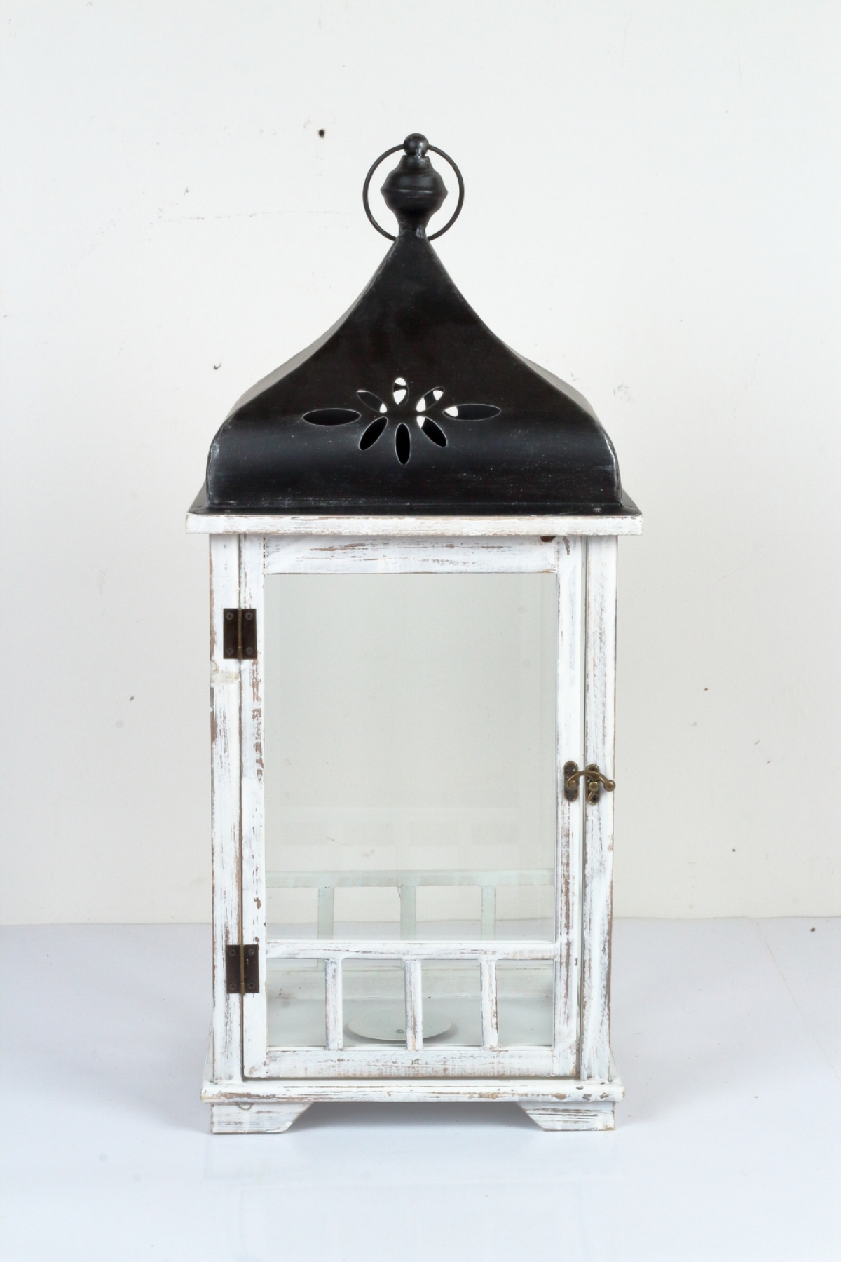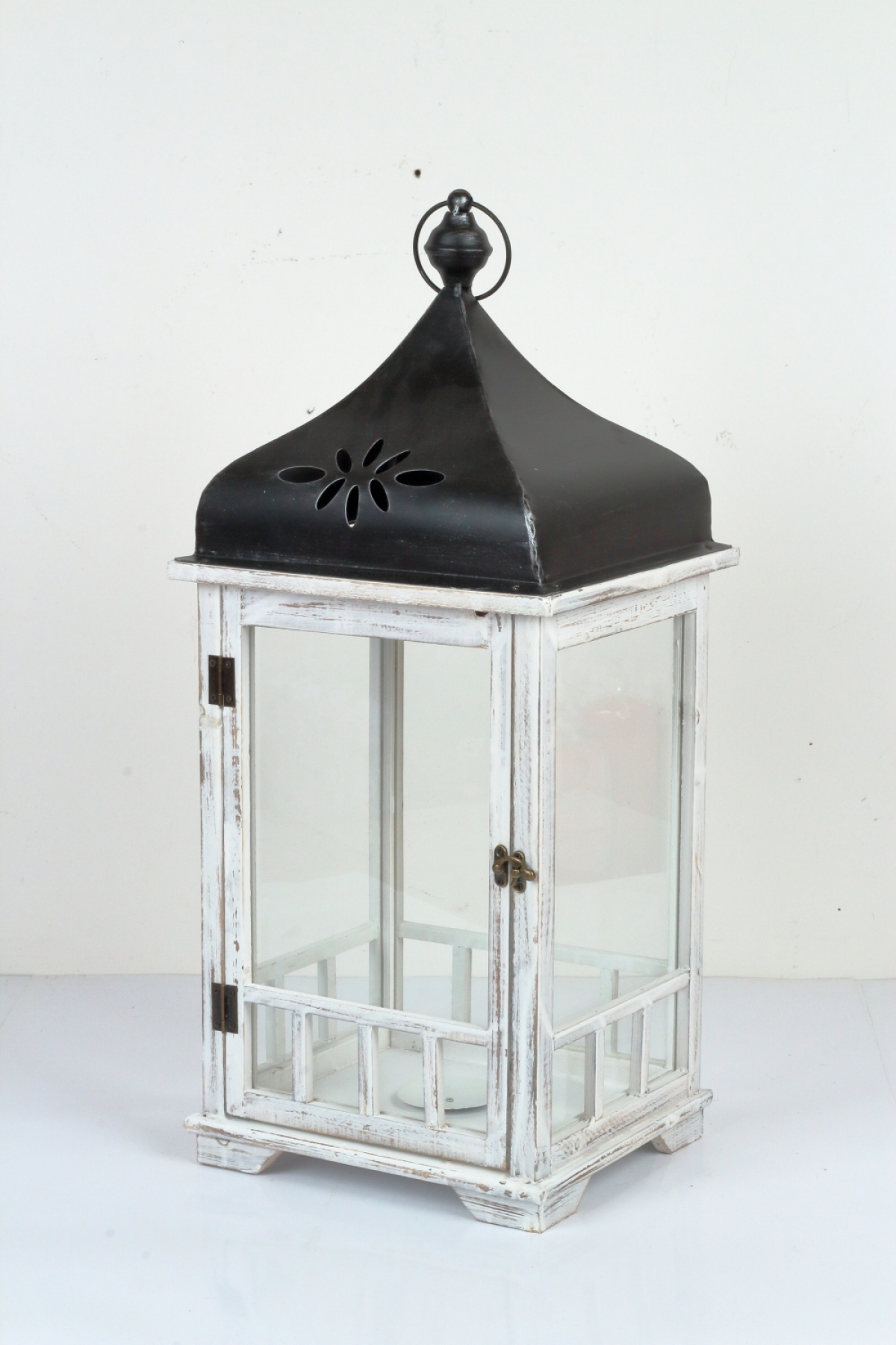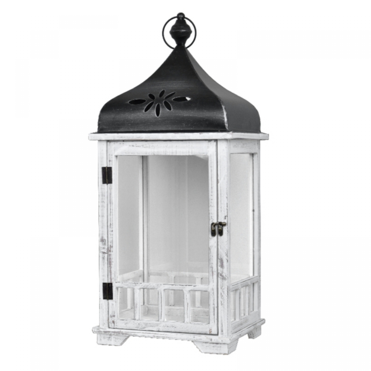 Lucerna drevená biela 70cm pre večerné chvíle pohody, s pohárom vína a zapálených sviečok. Naučte sa odpočívať a užiť si každý okamih!