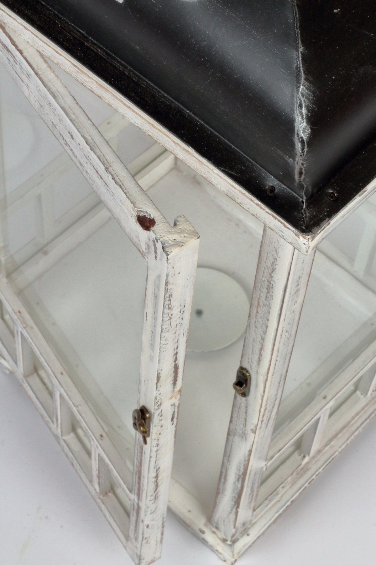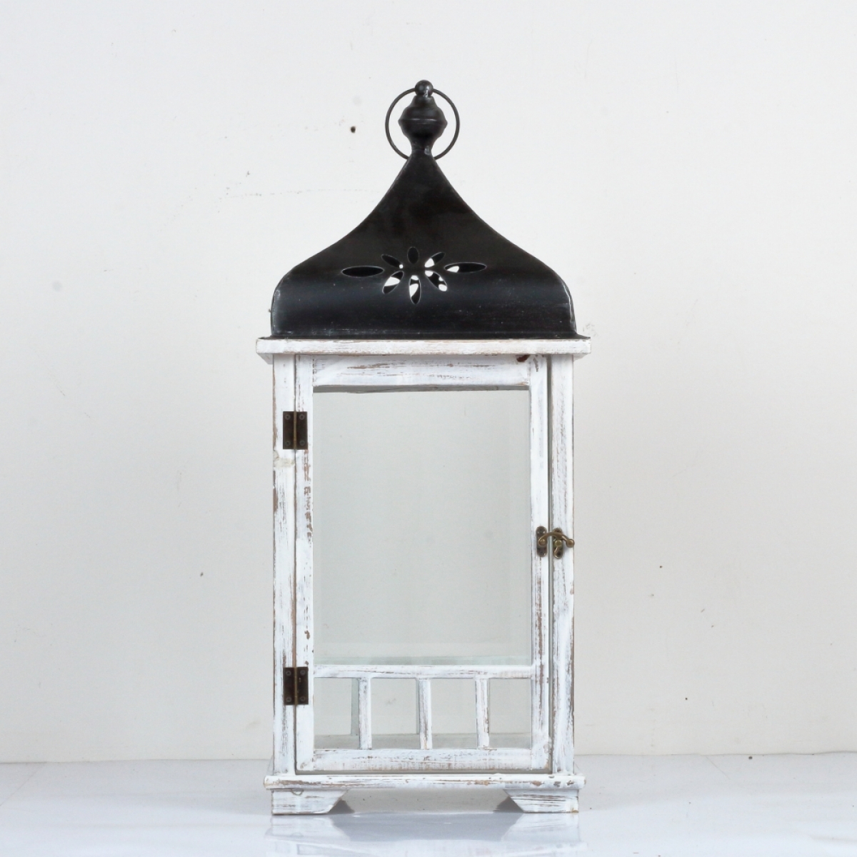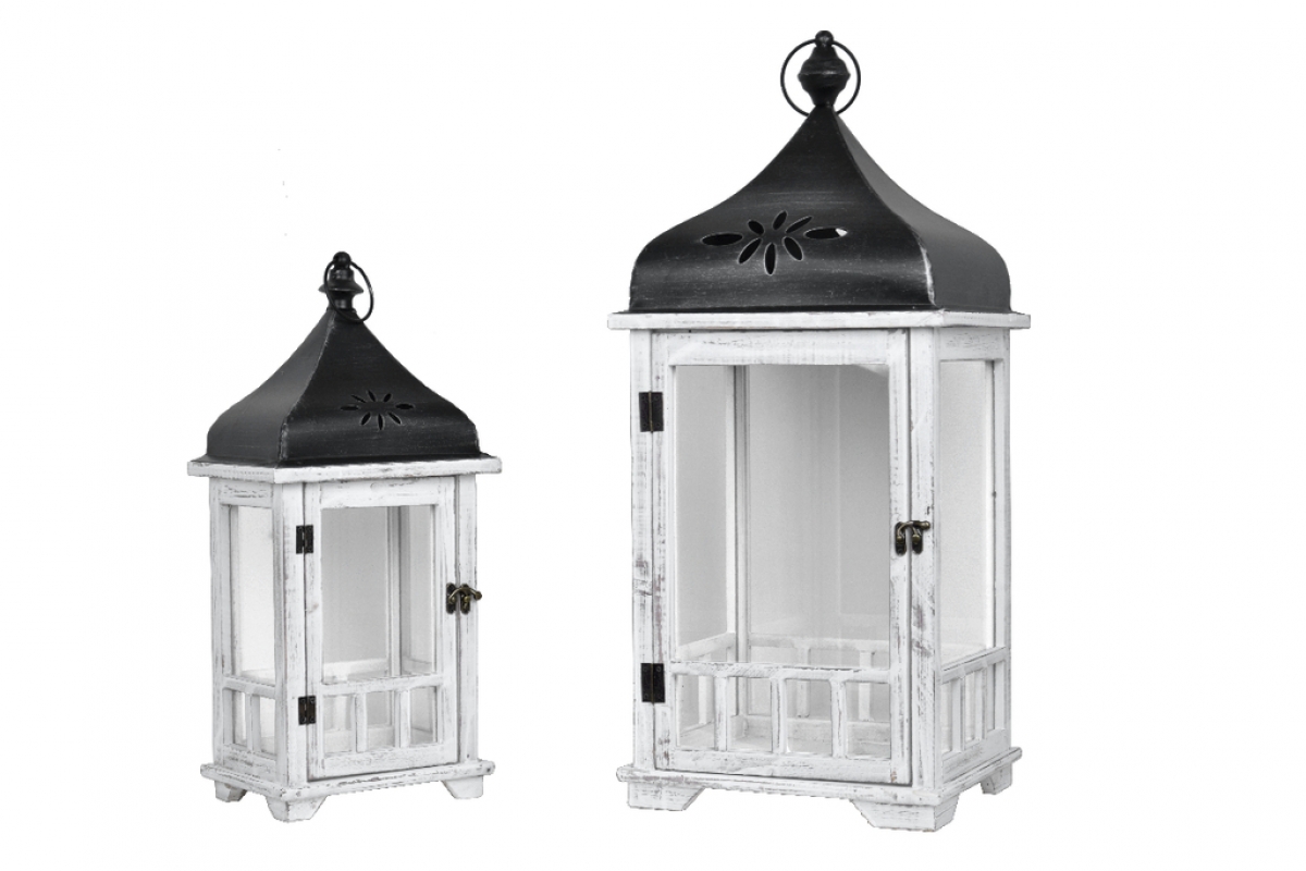 Lucerna drevená biela 70cm pre večerné chvíle pohody, s pohárom vína a zapálených sviečok. Naučte sa odpočívať a užiť si každý okamih!