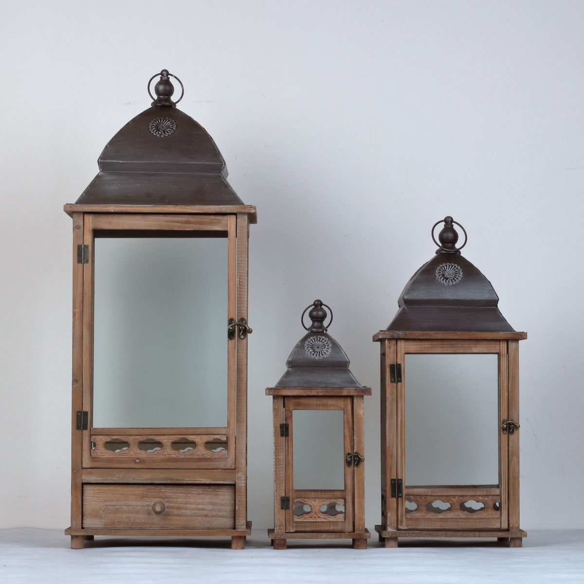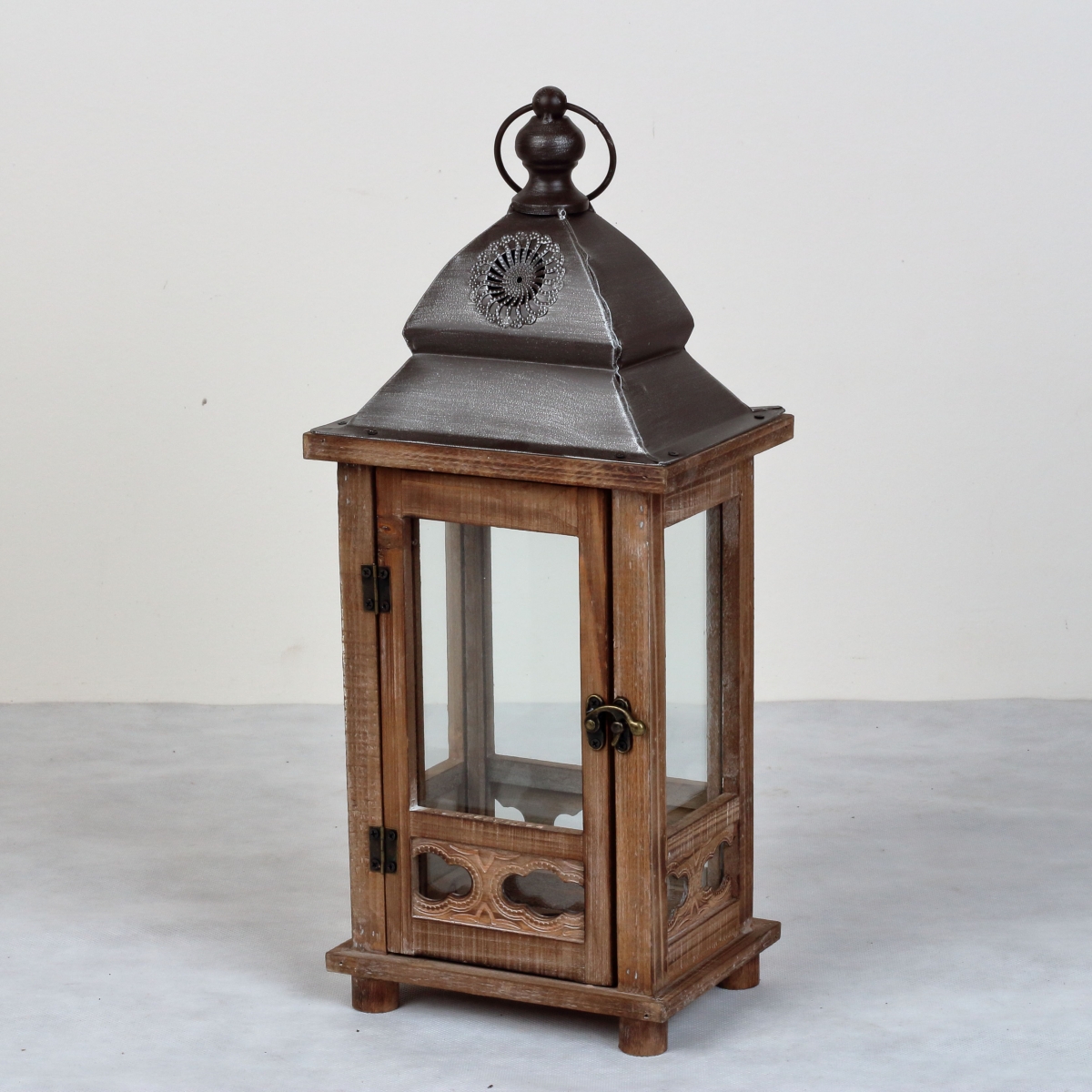 Lucerna patrí do sady 3ks, každá je však v ponuke samostatne. Majú otváracie predné dvierka a kovovou zdobenou striešku. Táto je najmenší z nich.