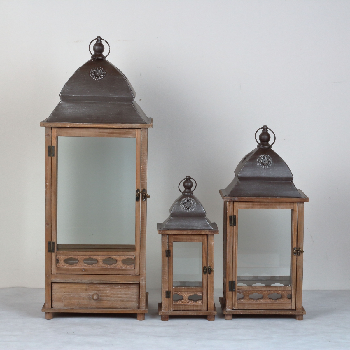 Lucerna patrí do sady 3ks, každá je však v ponuke samostatne. Majú otváracie predné dvierka a kovovou zdobenou striešku. Táto je najväčší z nich.