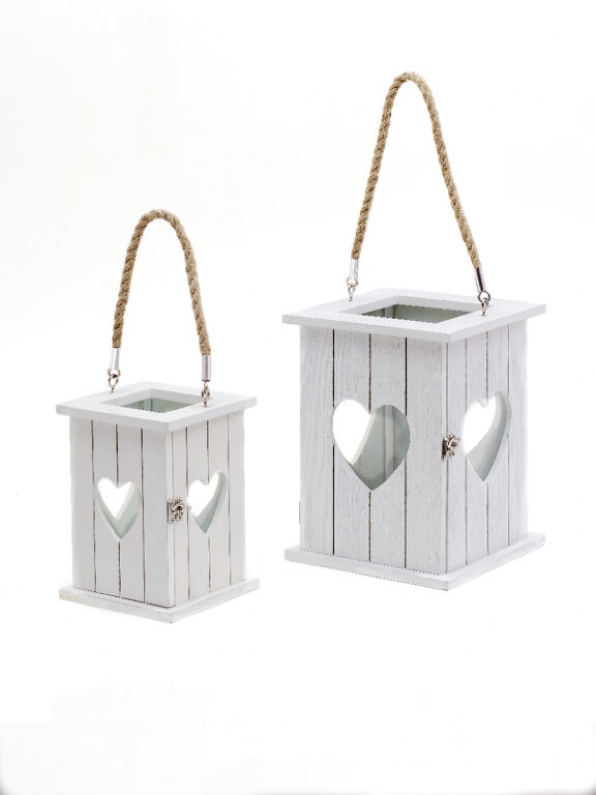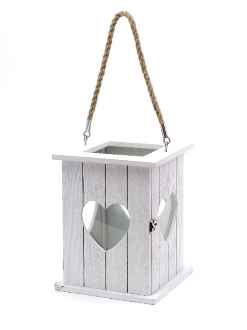 Lampáš so srdcom pre romantické letné večery. Drevený lampáš je opatrený jutovým lankom na zavesenie.