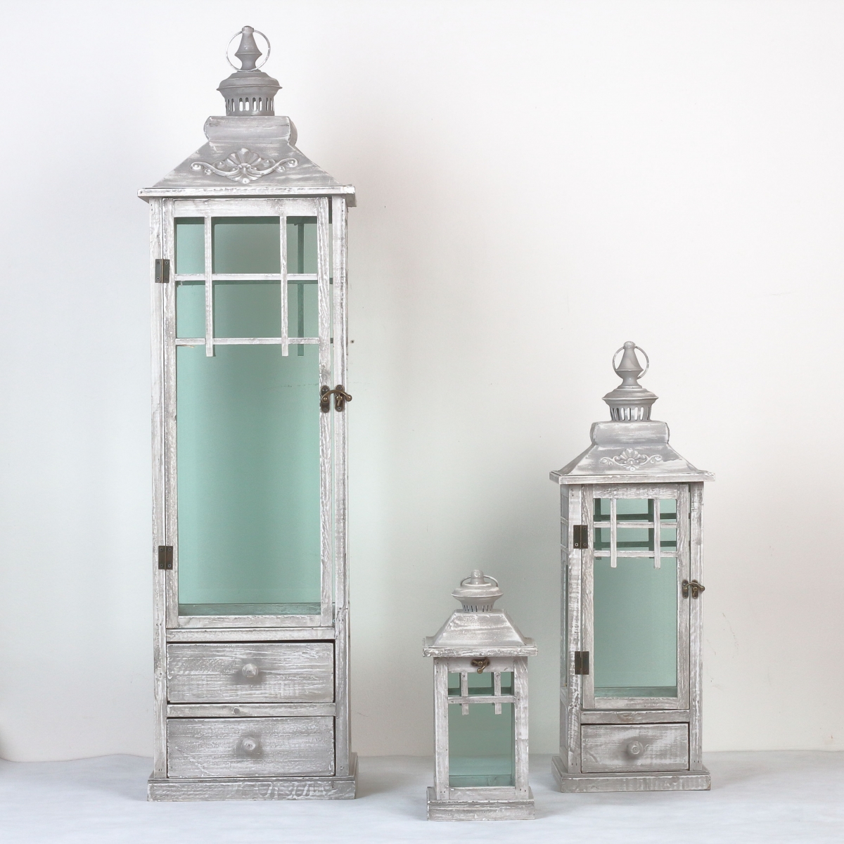 Lucerna má odklápací striešku, ľahko tak do nej vložíte veľkú sviečku (môžete použiť aj LED sviečku, ktorú nebudete musieť strážiť). Lucerna je zo sady 3ks, jednotlivé lucerny sú však v ponuke samostatne. Ďalšie dve lucerny majú rozmery 66cm / 115cm.