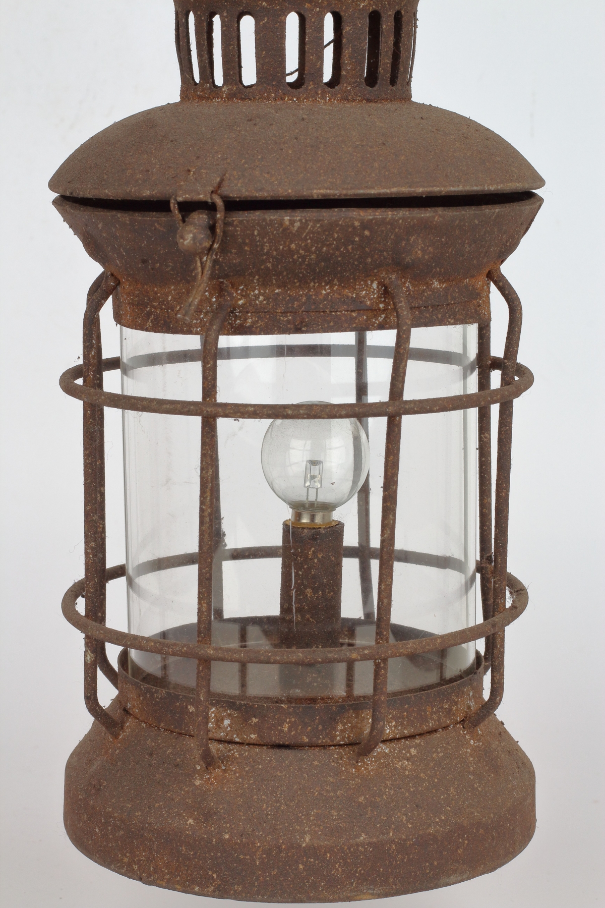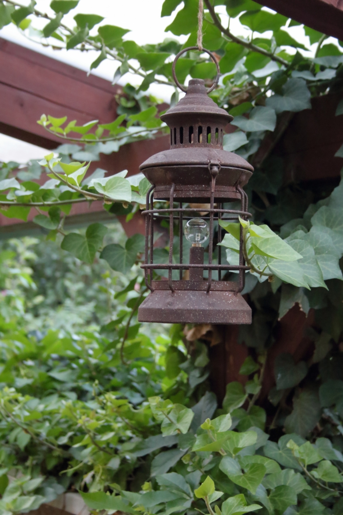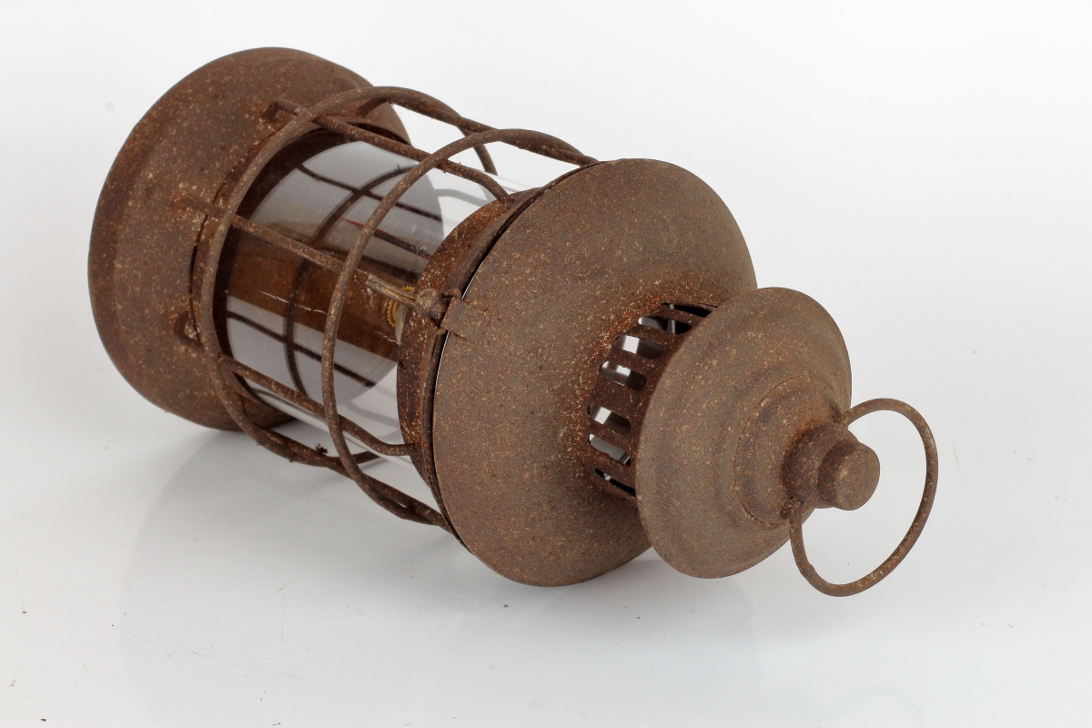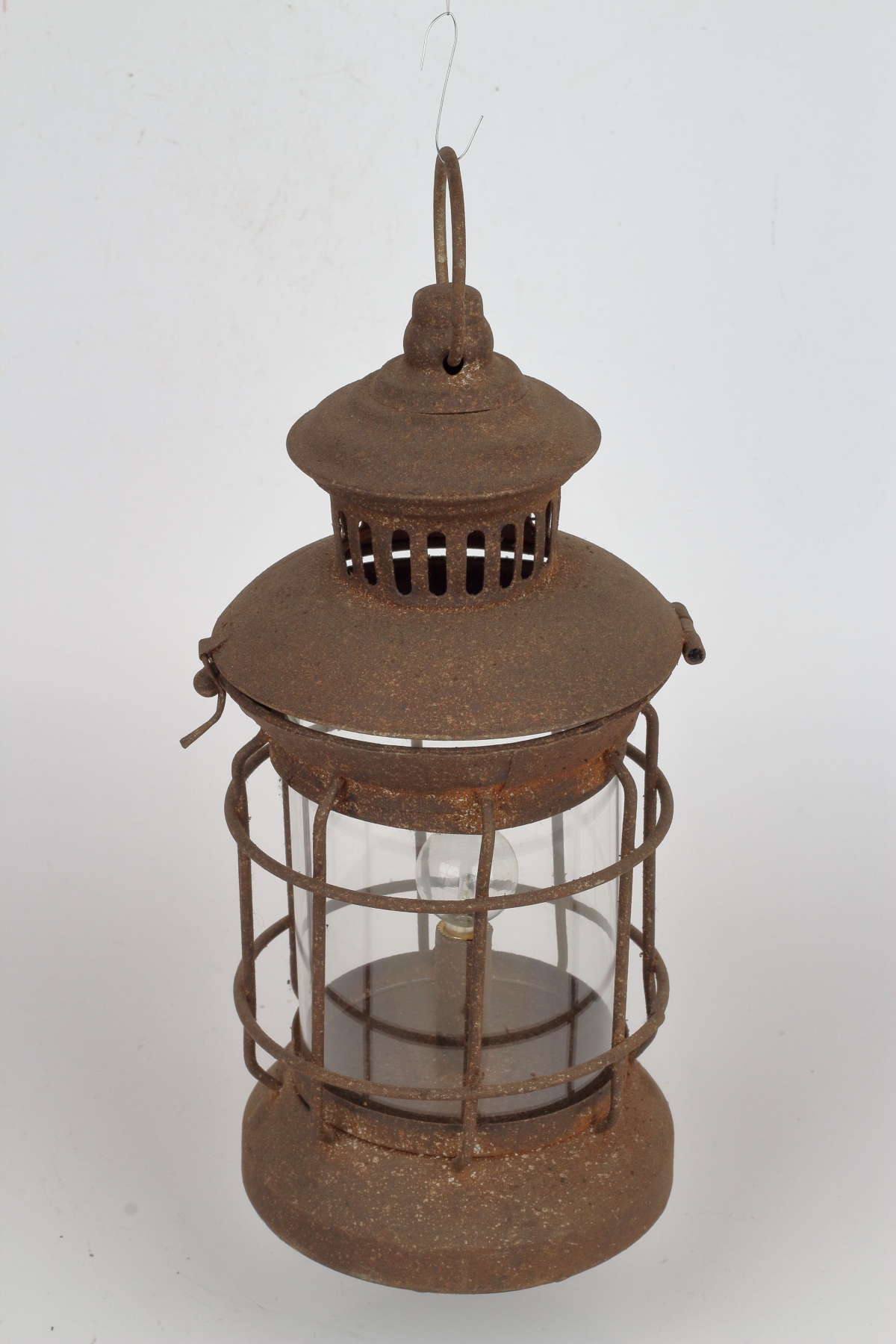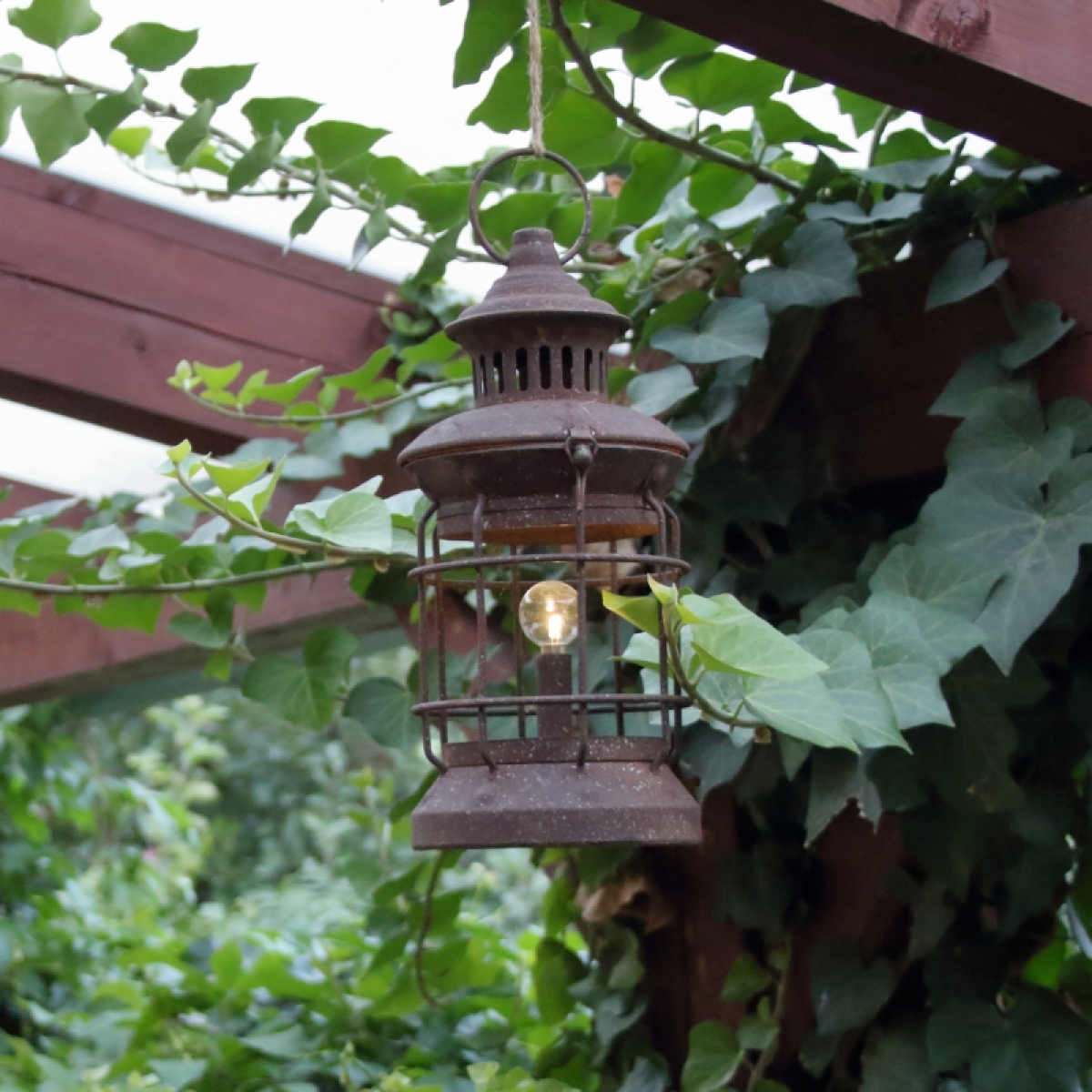Lucerna sa žiarovkou 13,5x28,5x13,5cm je kovová a má krúžok na zavesenie. Kovové časti sú zámerne hrdzavé, pre vytvorenie dojmu starých čias. Lucerna však disponuje modernou žiarovkou, a tak nebudete musieť strážiť oheň a báť sa prípadného vznietenia.