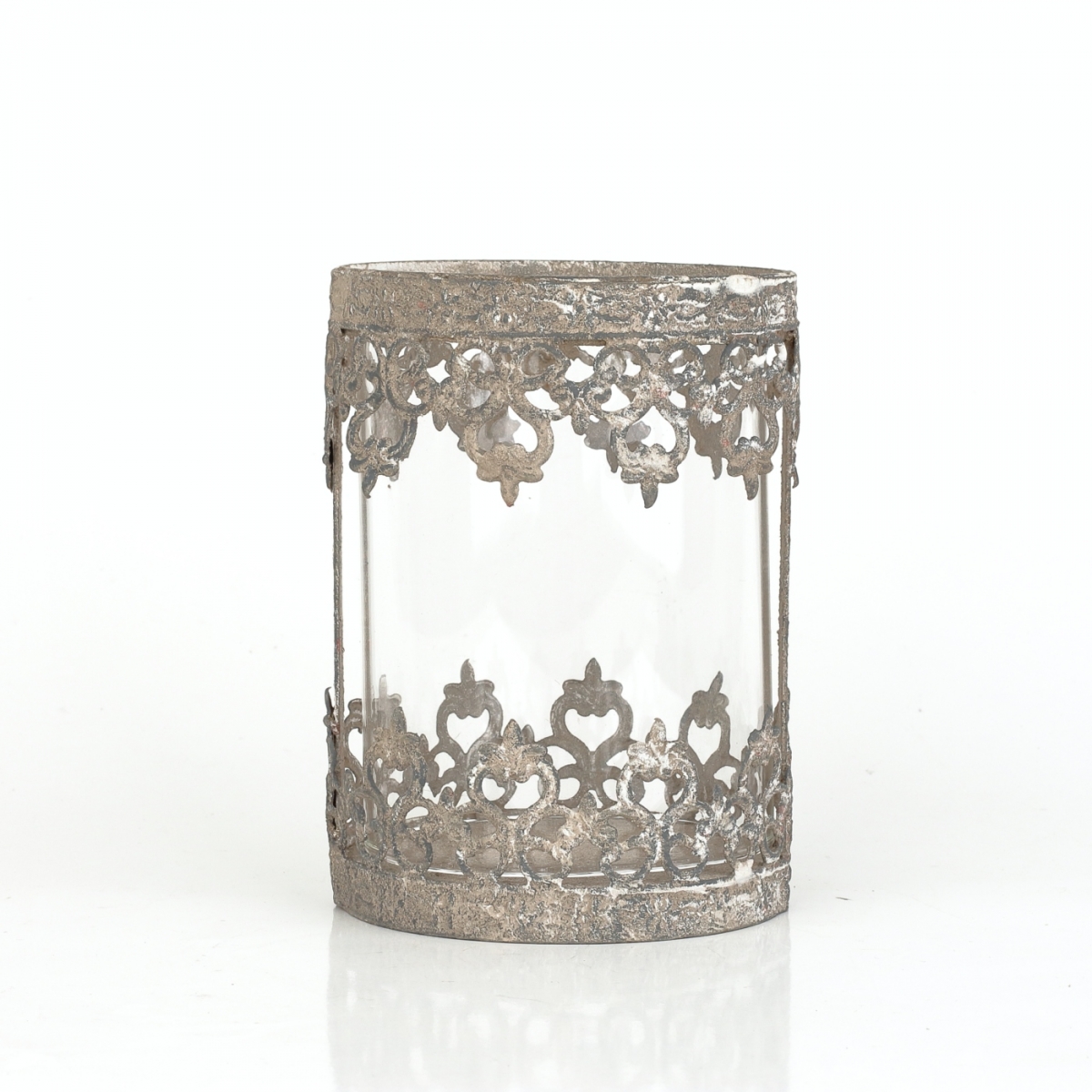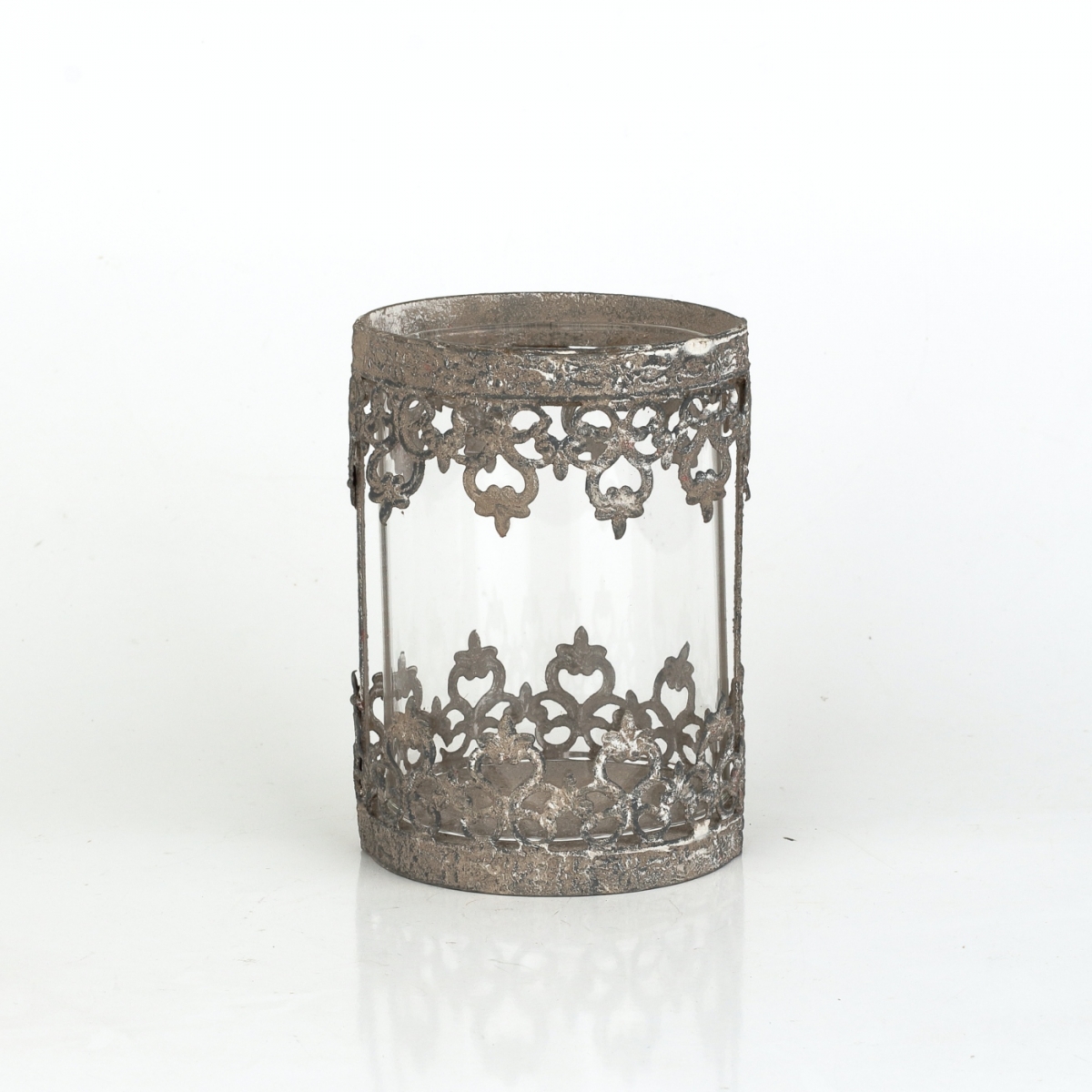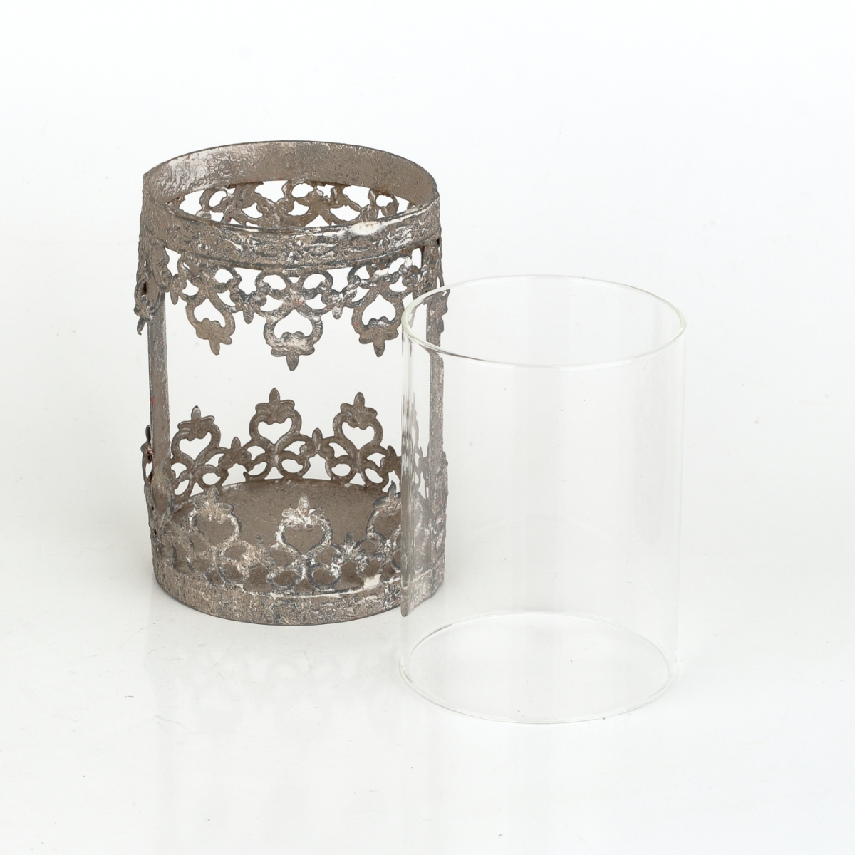 Lucernička na sviečku vyrobená z kovu a doplnená skleneným kalíškom. Romantická vianočná dekorácia pre Váš interiér navodí kúzelnú pokojnú atmosféru.