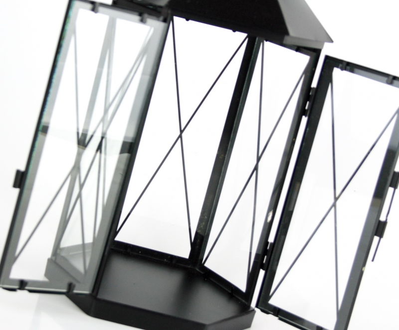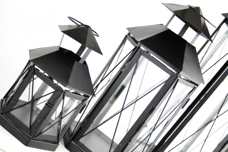 Lucerny sú v sade troch kusov - od najmenšej po najväčšiu. Lucerna má 6-tich hranný tvar, otváracie dvierka a kovový úchyt na strieške. Okienka majú sklenenú výplň.