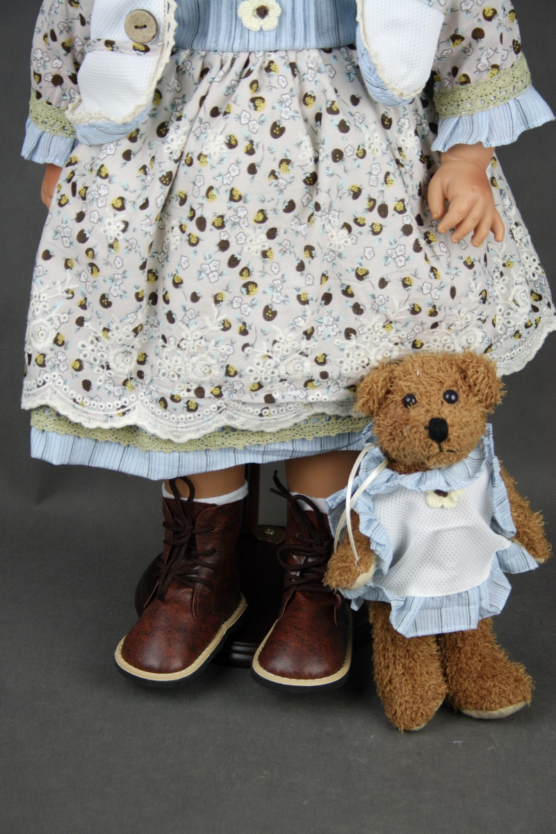 Hannah má do detailov prepracované šaty, kabátik, čepiec aj topánky. V ruke drží svojho obľúbeného plyšového medvedíka. Blond vlasy má zviazané do vrkočov.