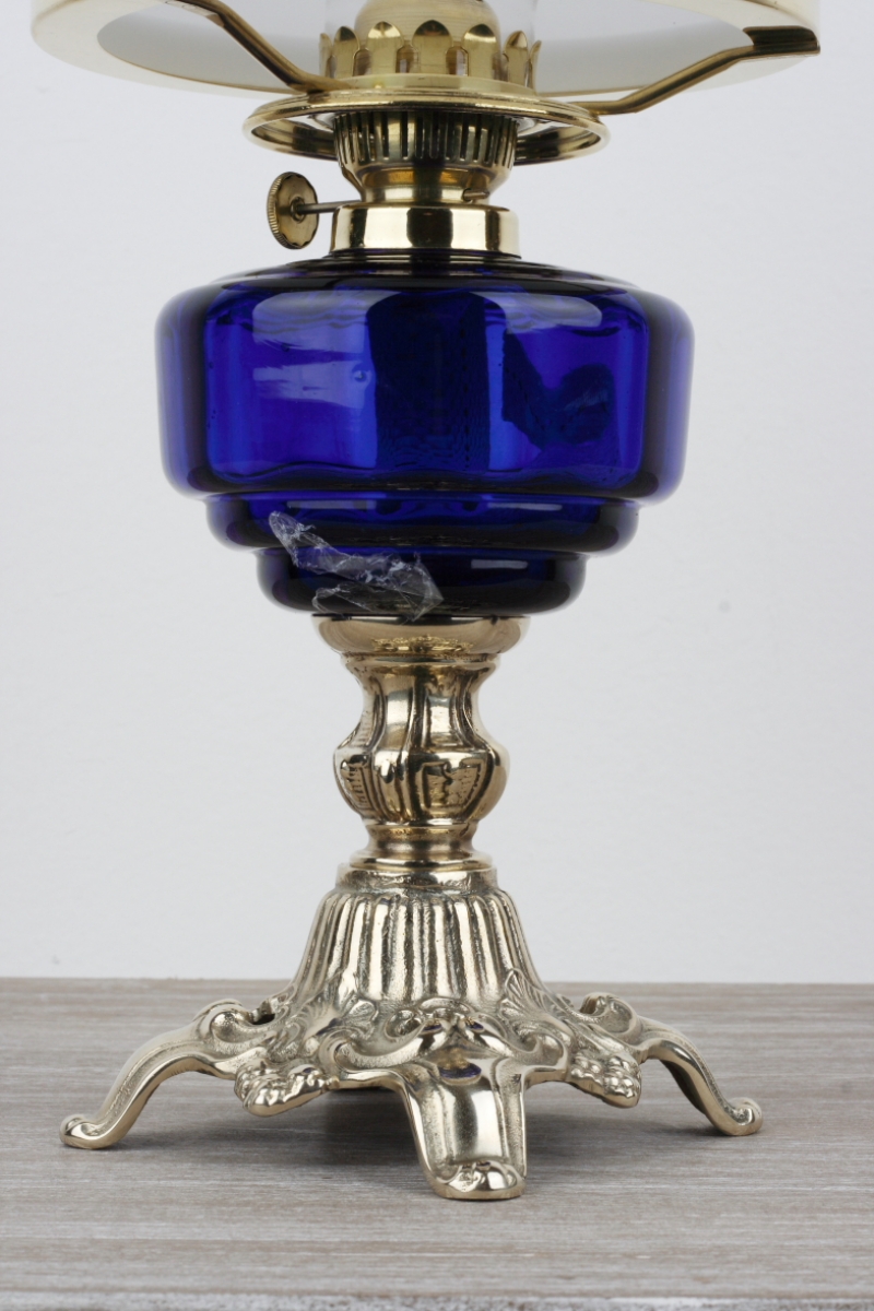 Luxusné stolová petrolejová lampa vo výraznej modrej farbe by nemala chýbať v žiadnom štýlovo zažízení interiéru, kde si majitelia zakladajú na originalite a prvnotřídní kvalite.