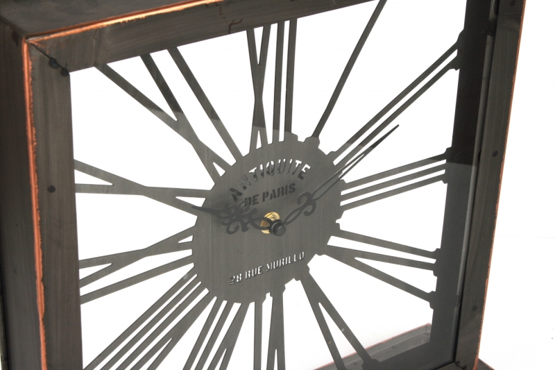 Luxusné stolné hodiny presklené 38,5x50cm sú jedinečné vďaka presklenému ciferníku, ktorý nie je príliš obvyklý. Použité materiály súznie s industriálnym štýlom.