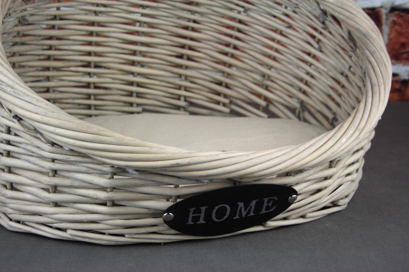 Pelech je vyrobený z kvalitného prútia, ktoré je doplnené o pohodlnú podložku. Na prednej strane má ceduľku s nápisom HOME.
