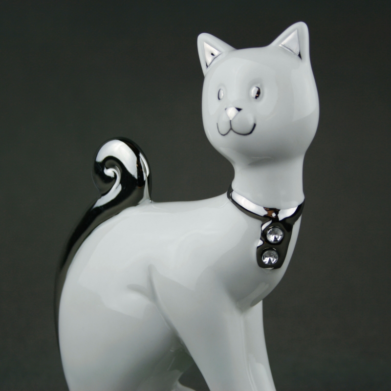 Kočka bílo-stříbrná A bude krásnou decentní dekorací vašeho bytu.