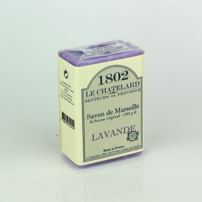 Marseillské mydlo levanduľa Le Chatelard 100g vyrobené v samom srdci Provence má podmanivú, nezameniteľnú vôňu levandule.
