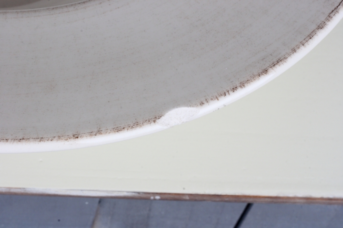 Vyřazeno z důvodu poškození o velikosti vva 5mm nebránící užívání viz. fotografie č. 4. a 5.