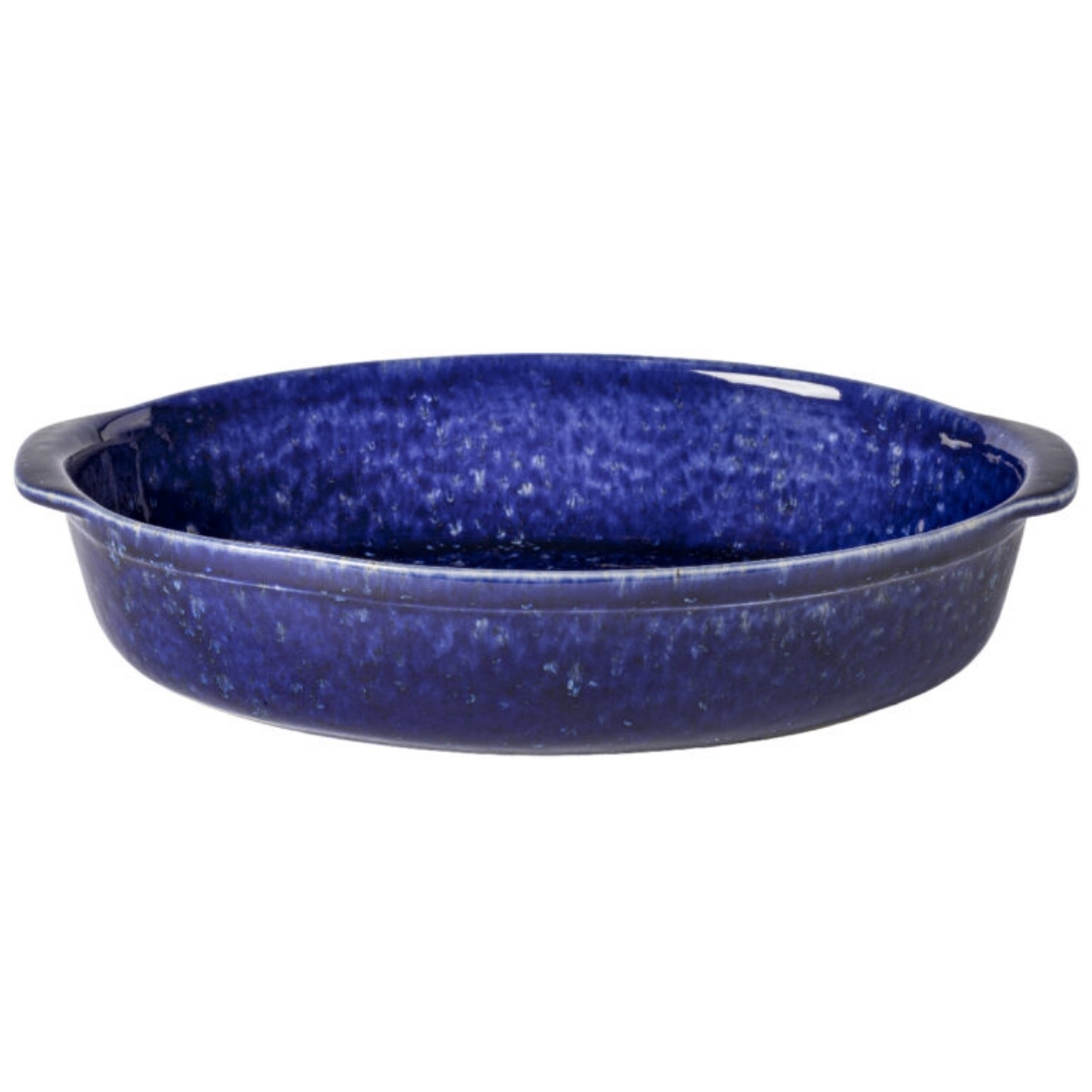 Táto oválna misa je vyrobená z odolnej keramickej hliny, ktorá spoločne s kvalitnou glazúrou, zaručuje jej dlhú životnosť. Krásna tmavo modrá glazúra je navyše efektná, vytvára na svojom povrchu veľmi jemné mramorovanie vo svetlejšom odtieni, ktoré robí svojou kresbou z každého kúska originál.