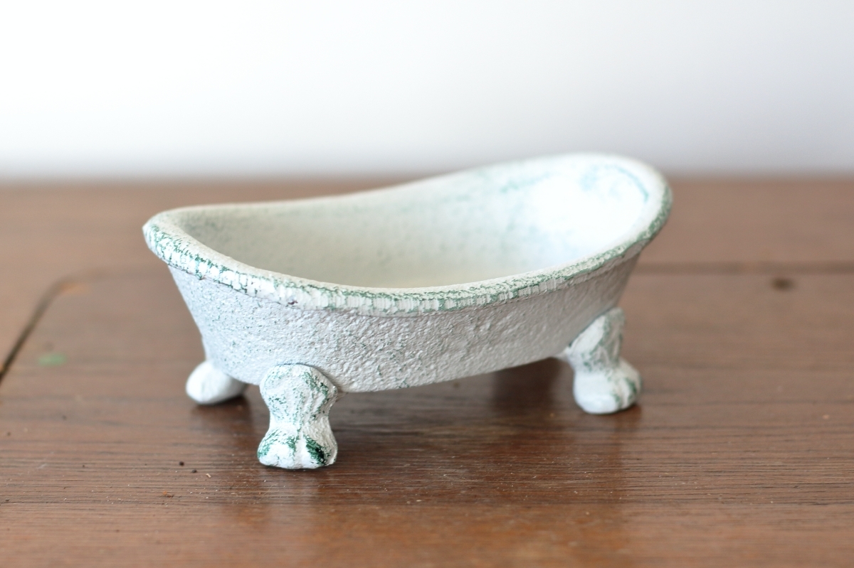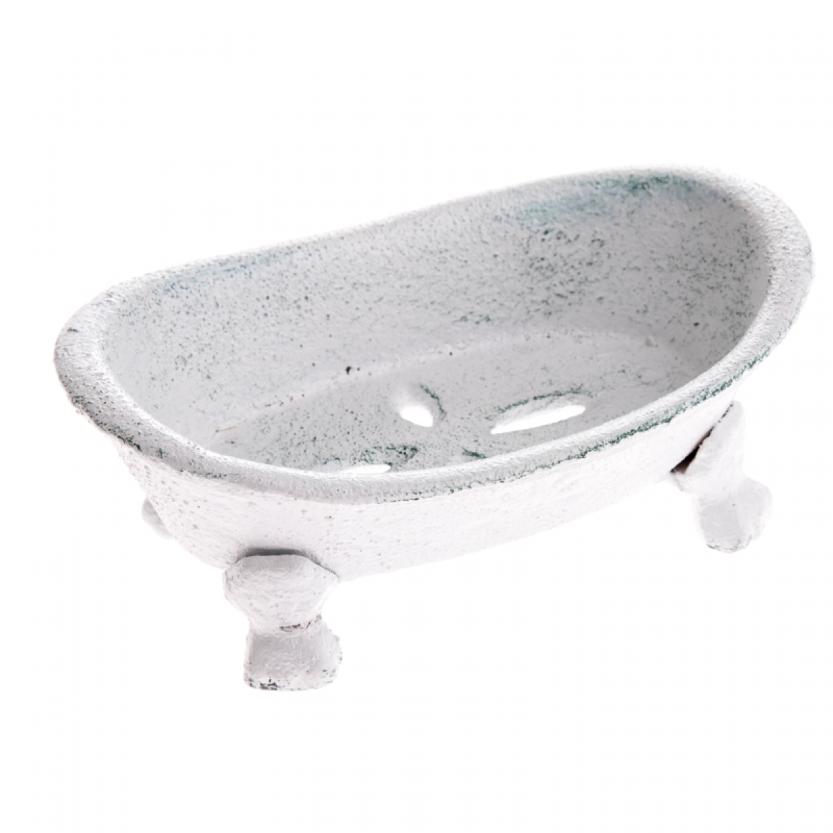 Miska na mydlo v tvare vaničky pekne doplní zátišie na umývadle alebo drezu. Vďaka štyrom nôžkam je veľmi stabilný a uprostred má navyše otvory, ktorými môže unikať prebytočná voda z práve použitého mydla.