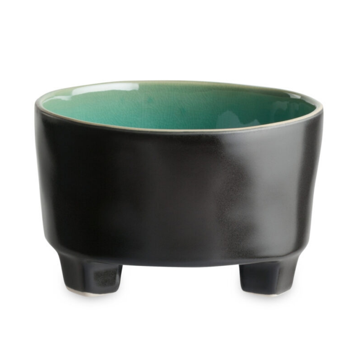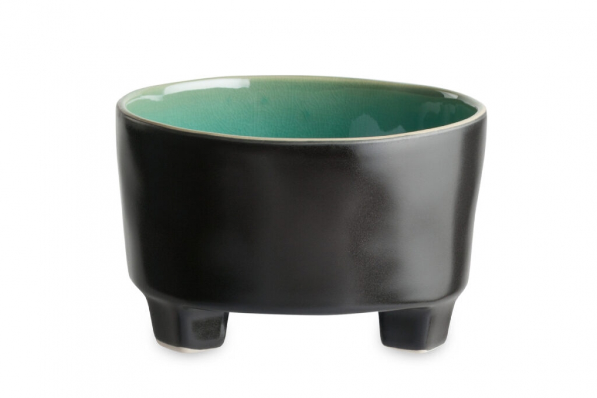 Originálna miska na nožičkách urobí veľkú parádu. Vhodná je na polievku, zmrzlinu, či raňajky, skrátka ide o všestranný kúsok. Vonkajšia glazúra misky je čierna, vo vnútri azúrová. Kontrastná a veľmi atraktívna kombinácia.