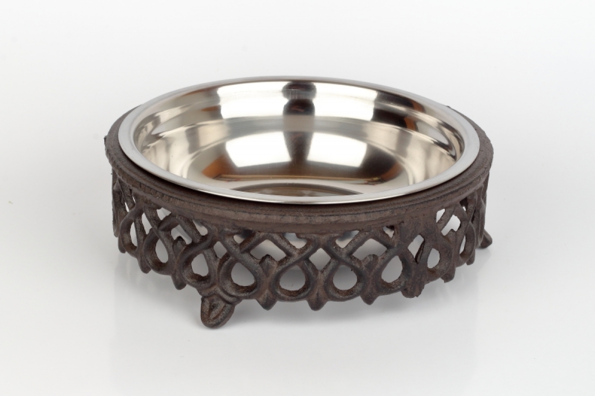Kúpte svojmu psíkovi misku, ktorá niečo vydrží. Krásna zdobená liatinová konštrukcia má praktickú nerezovú misku, ľahko ju vytiahnete a umyjete.