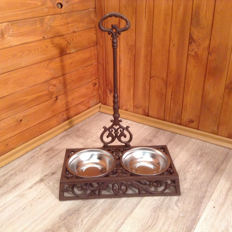 Miska pro psa z litiny je určená predovšetkým vašim psím miláčikom . Jej rozmery sú 42 x 23 x 9cm . Výška s úchytom je potom 59 cm .