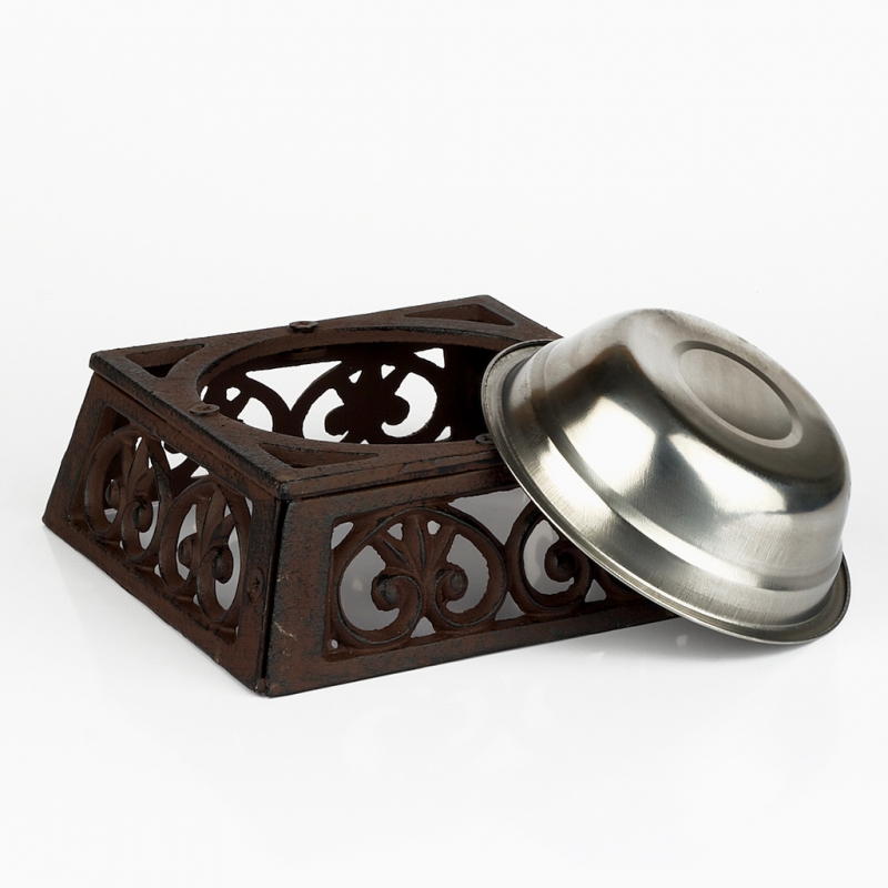 Súčasťou dodávky je nerezová miska , ktorá sa vkladá do liatinového podstavca. Týmto spôsobom aj ľahko misku vyberiete a môžete ľahko umyť.