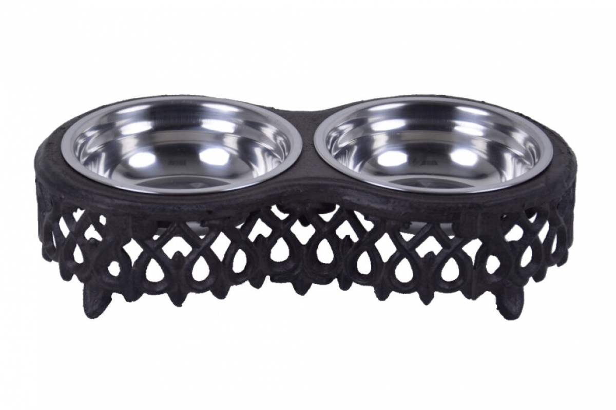 Nielen my, aj naši miláčikovia si zaslúžia doplnky, ktoré budú nielen funkčné, ale aj krásne. Nie inak je to v prípade tejto misky pre psa. Miska pre psa obsahuje 2 obyčajné plechové misky umiestnené v krásnom liatinovom podstavci.