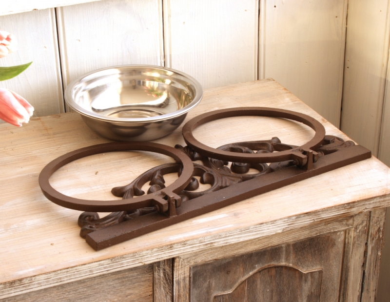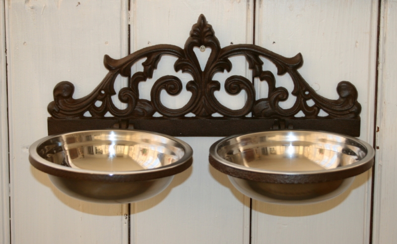Misky sú voľne vsadené do liatinovej nástennej konzoly.