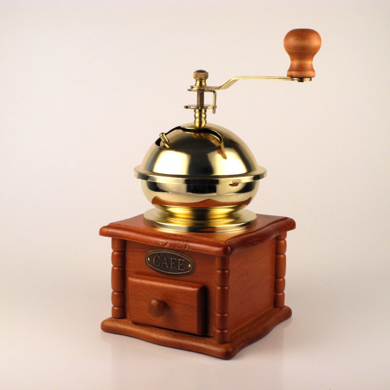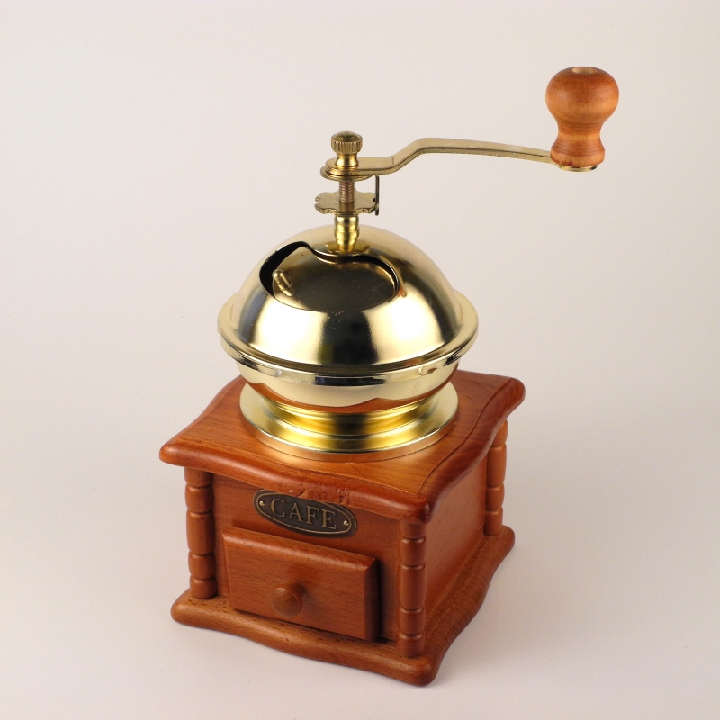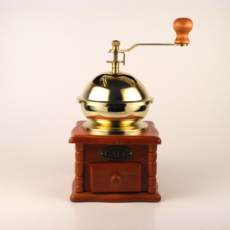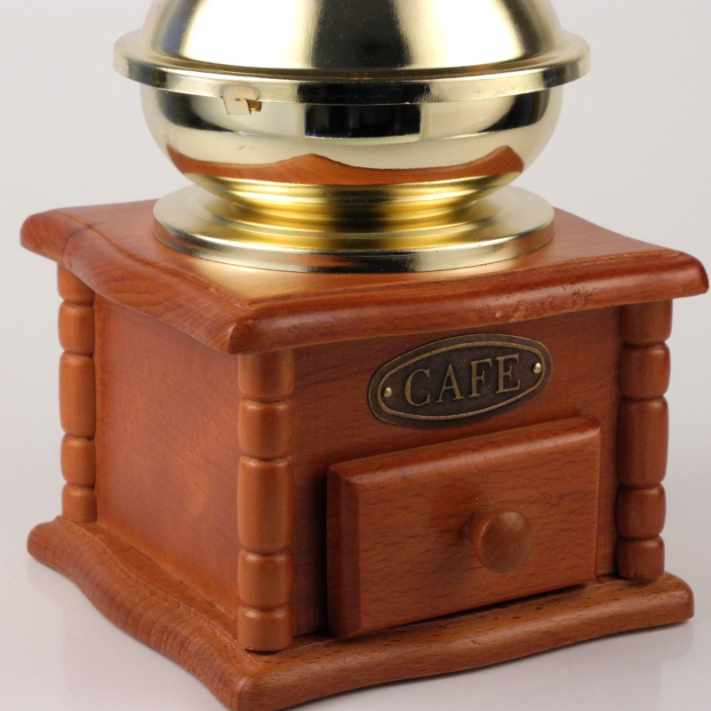 Mlynček na kávu drevený - zlatá kupola 20x12x12cm
