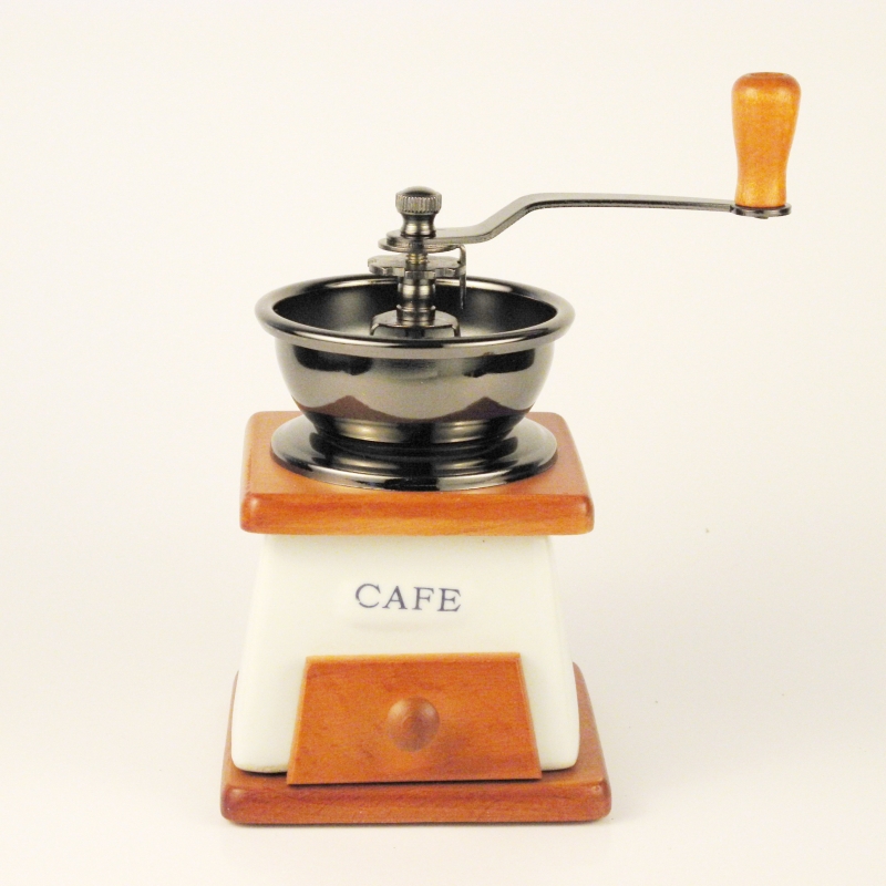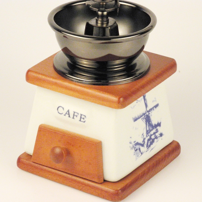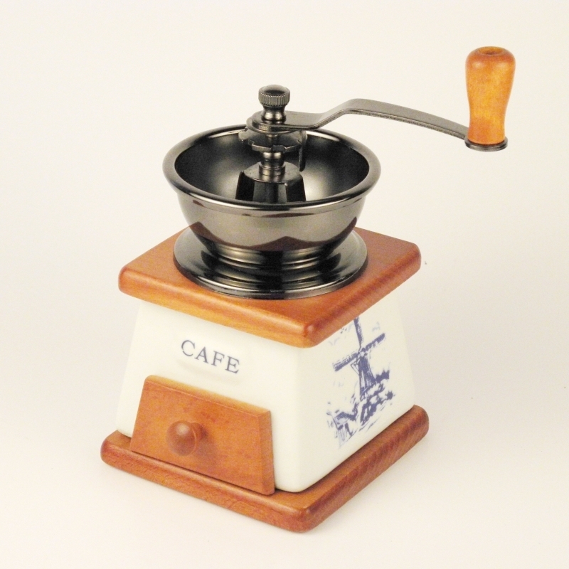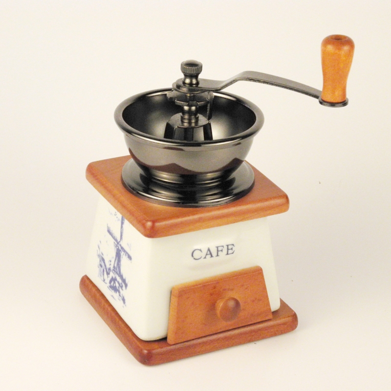 Mlýnek na kávu porcelánový s holandským mlýnem.