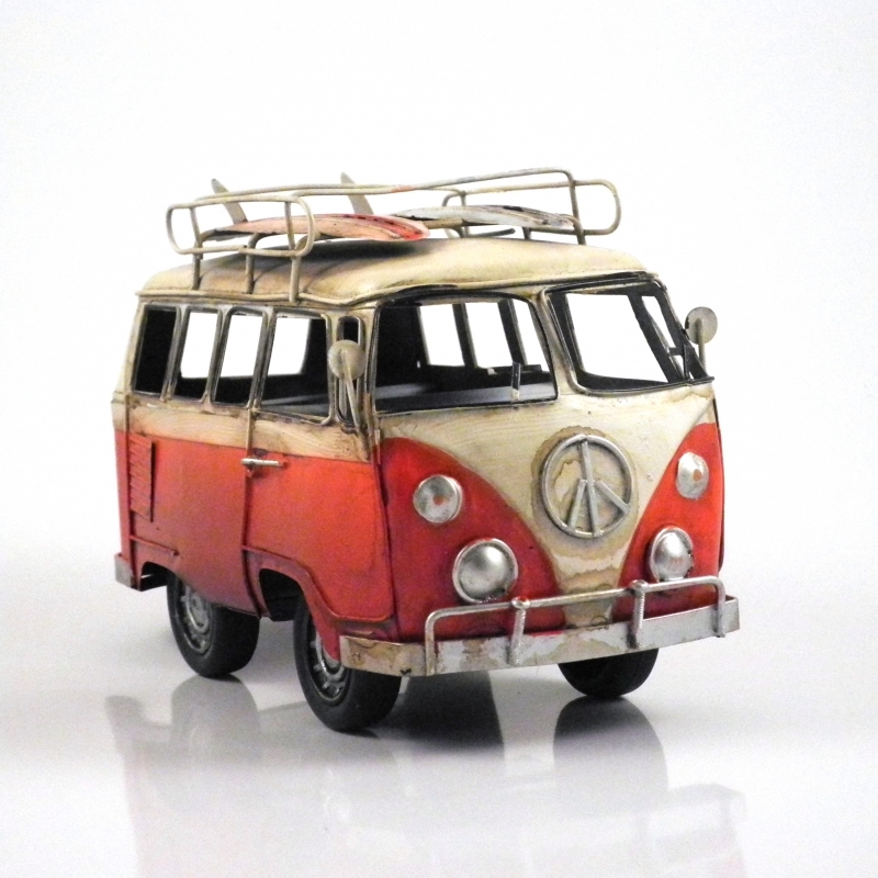 Celý model je vyroben z plechu a kovových částí, ručně lakovaný. Na střeše má připevněna dvě surfařská prkna.