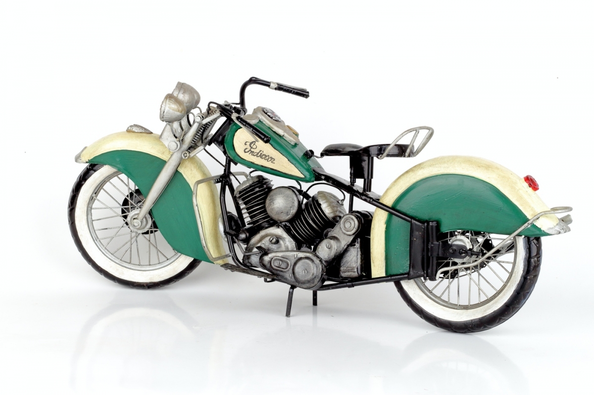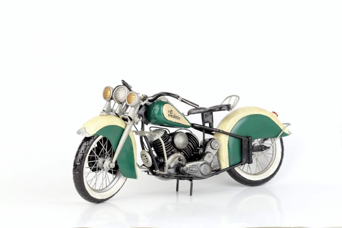 Model motorky s dĺžkou 48cm bude skvostným kúskom vo vašej zbierke kovových modelov a zároveň krásna dekorácia do vášho interiéru. Do detailu prepracovaný model motorky v zeleno/bielej farbe vynikne v pracovni alebo v kancelárii.