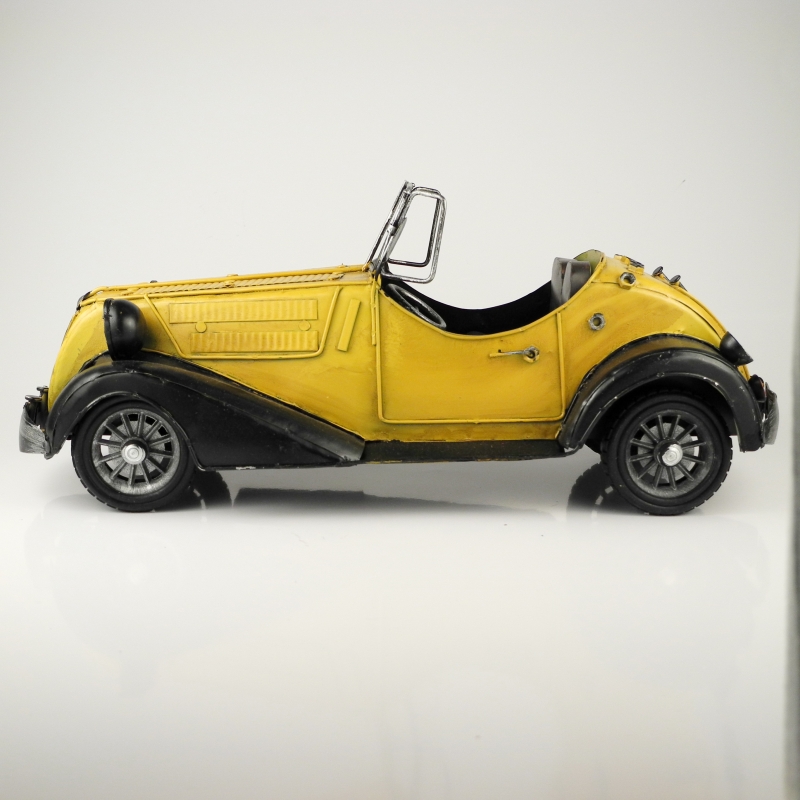 Celý model tohoto závodního retro vozu je vyroben z plechu a kovových částí, ručně lakovaný.