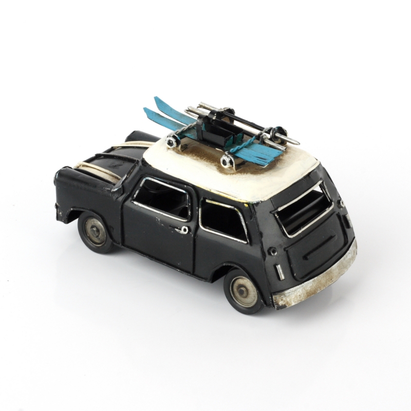 Modely áut čierne auto 16cm sa zimné výbavou na streche je pripravené k odchodu. Zberateľské kúsky áut, lietadiel, bicyklov či motorom sú ideálnym darčekom pre každého muža.