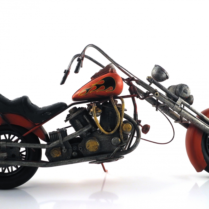 Motorka Fire Chopper nadchne každého muže, nejen sběratele. Bude nádhernou stylovou dekorací i zajímavým a neobvyklým dárkem. Motorka je vyrobena z plechu a je dlouhá 45 cm. Její kapota zaujme výrazným lakem a airbrushem. Na motorce je dokonale proveden každičký detail, takže je na ní neustále co objevovat. Motorka vypadá, jako by se právě vrátila z výletu, je jako by zašpiněná a zablácená.