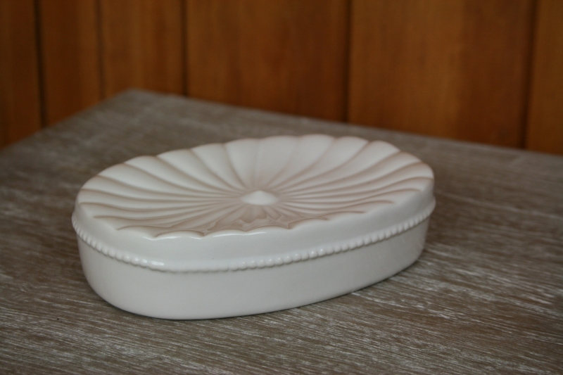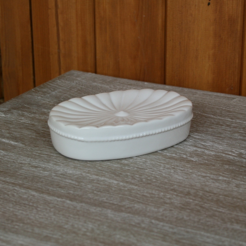 Mydelnička je vyrobená z kvalitnej keramika a má bielu farbu. Odkladacia plocha je rebrovaná pre zamedzenie skĺzavaniu mydla, po stranách je drobné zdobenie.