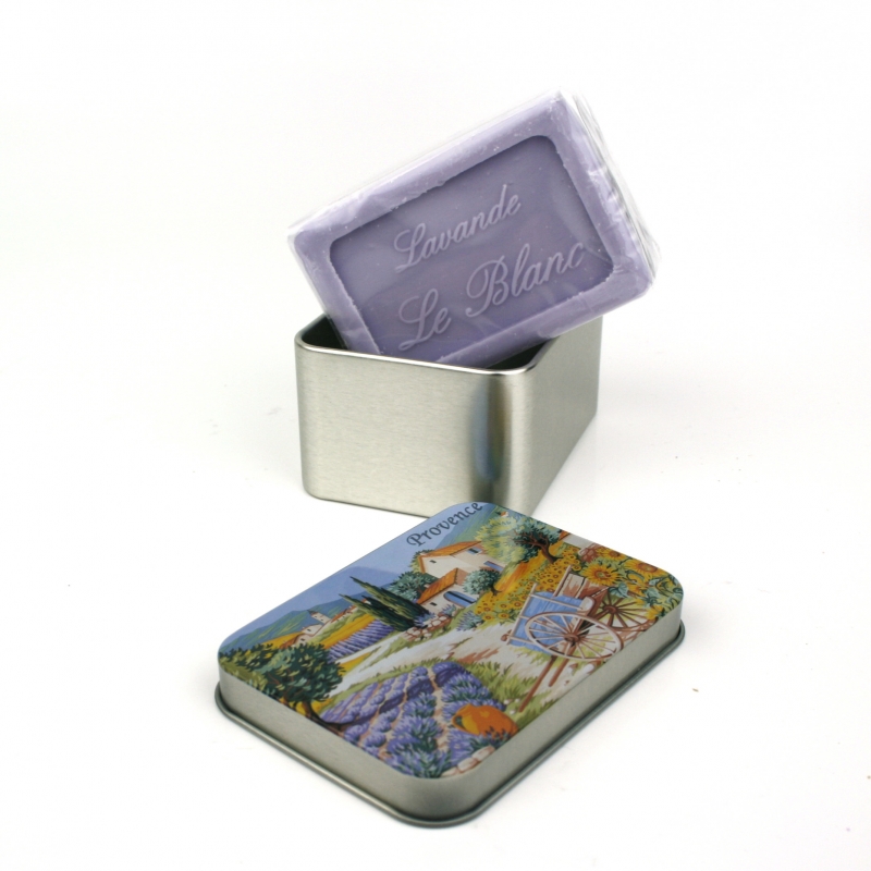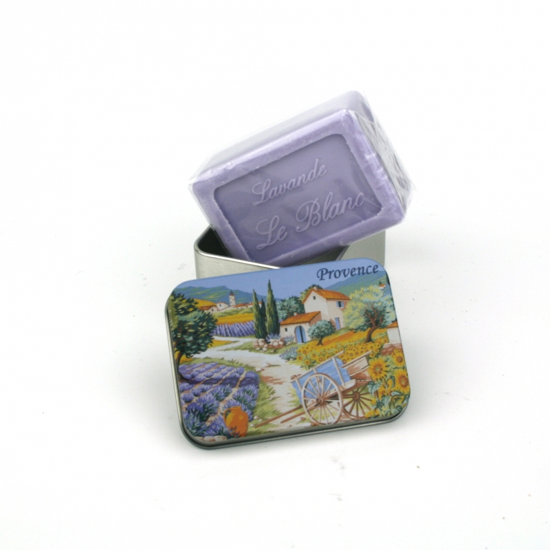 Balenie obsahuje mydlo (100g) v maľované plechovej krabičke.
