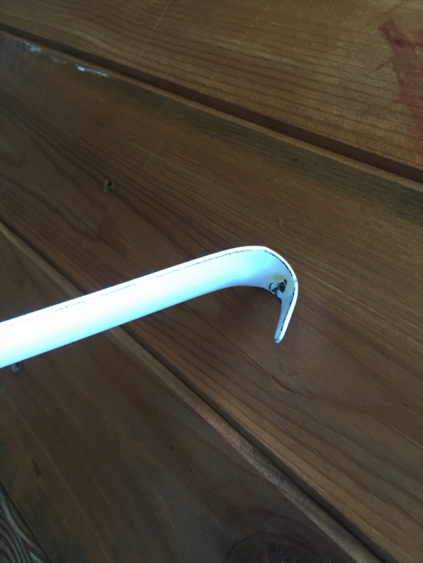 Vyřazeno z důvodu nedosmaltování v místě závěsu naběračky.