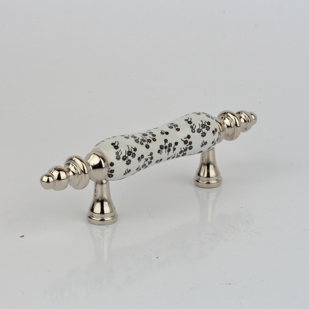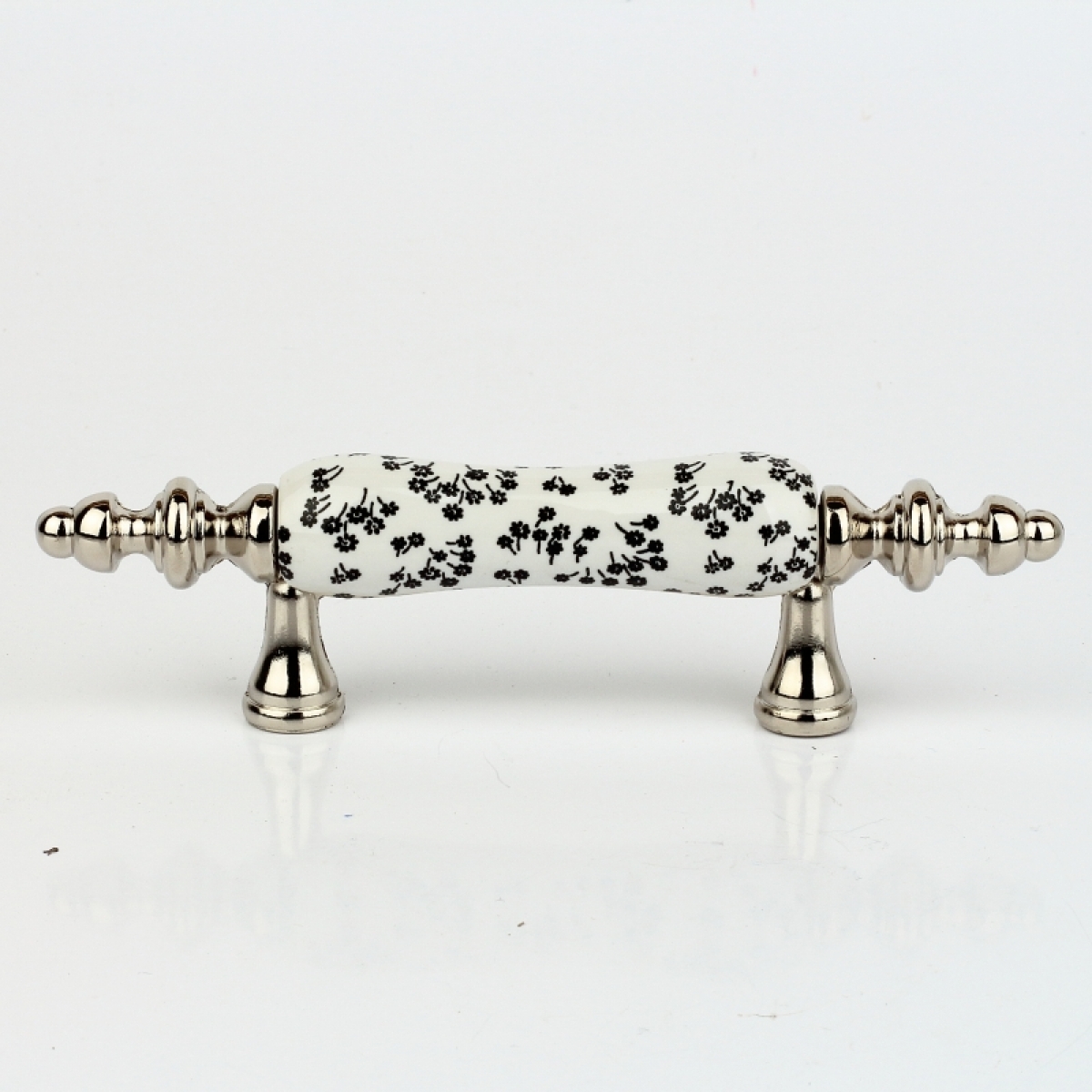 Nábytková úchytka keramická biela s čiernymi kvietkami 12x2cm