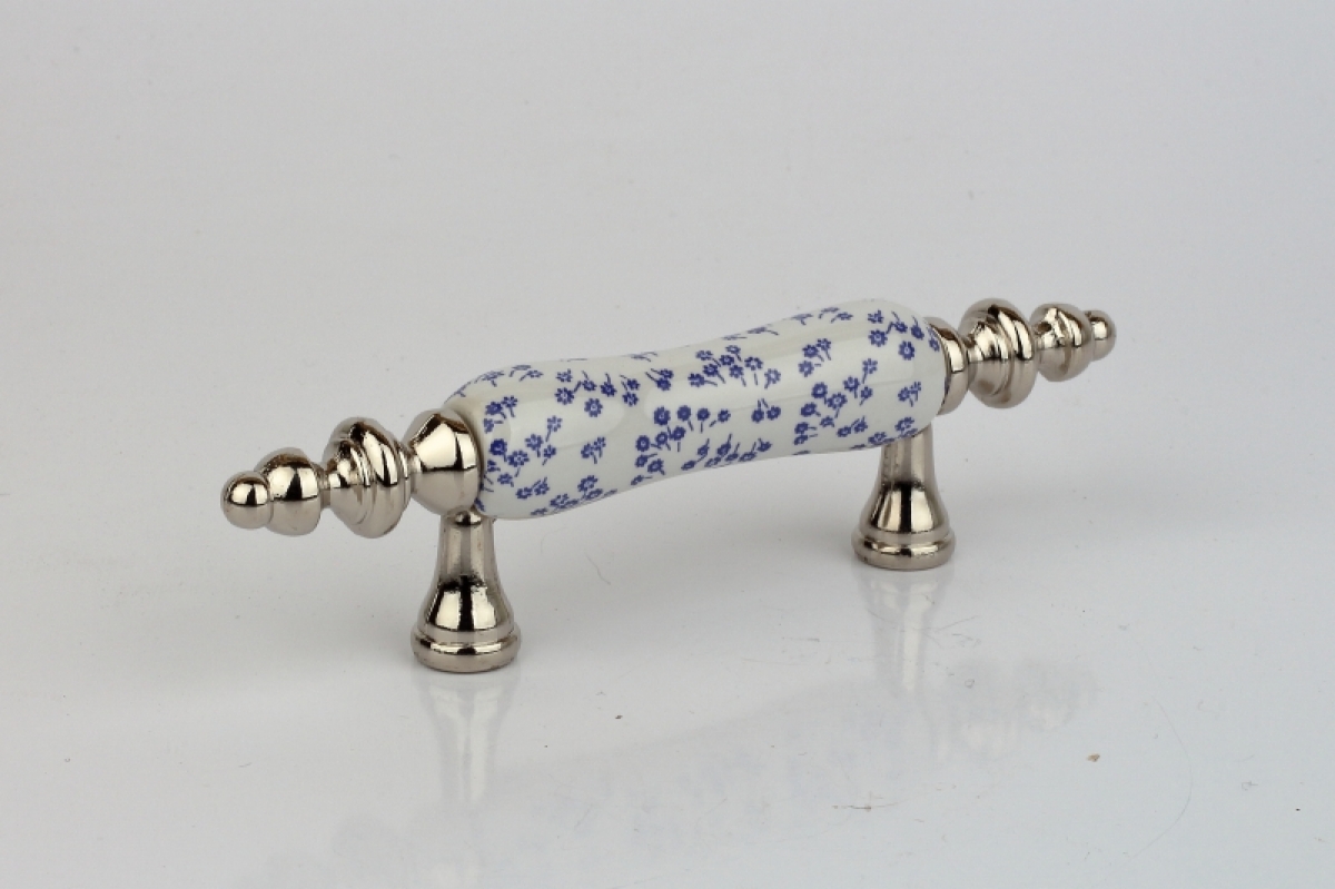 Nábytková úchytka keramická biela s modrými kvetmi 12x2cm