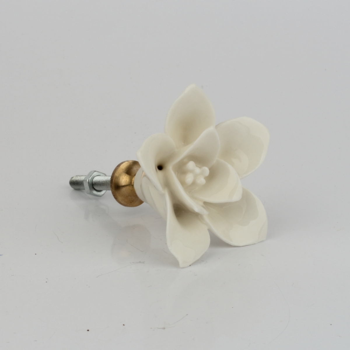 Nábytková úchytka keramická kvetina biela 3,5cm