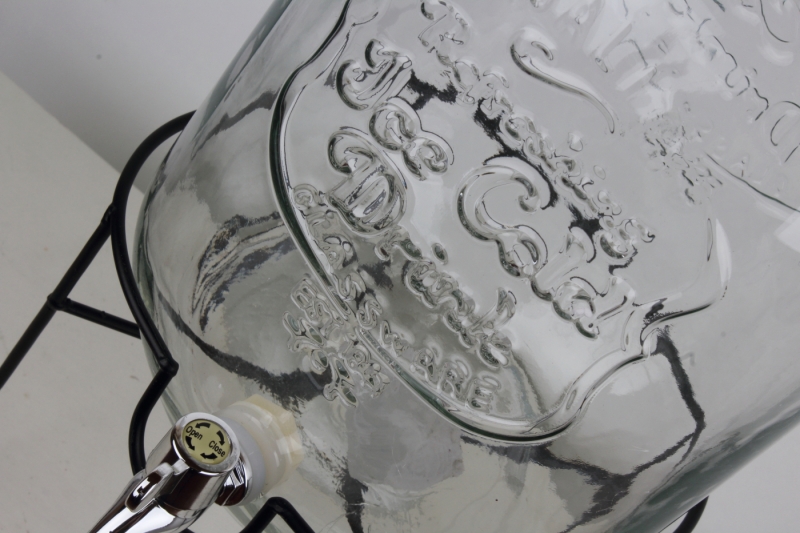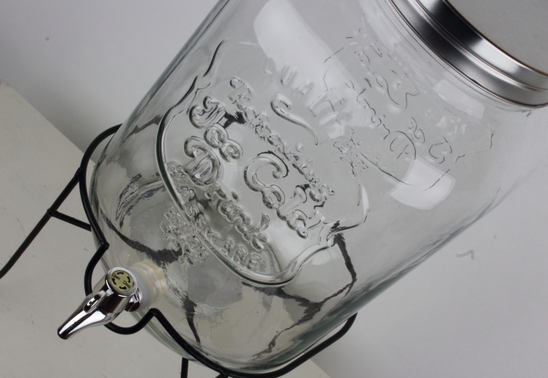 Dóza je z číreho skla, kovové veko je skrutkovacie, kohútik (tvrdený plast s povrchovou úpravou) má tesnenie, na prednej strane nápis Ice Cold Drink.