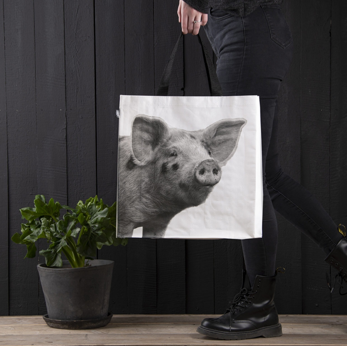 Ak hľadáte nákupnú tašku, ktorá bude dostatočne pevná a zároveň štýlová, natrafili ste na ten pravý kúsok! Krásna čierno-biela fotografia jahniatka vyniká na bielom podklade. Vďaka dlhým čiernym uchám sa navyše ľahko nosia aj na ramene.