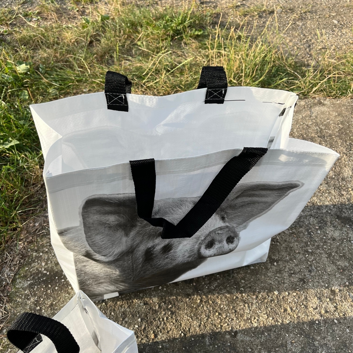 Ak hľadáte nákupnú tašku, ktorá bude dostatočne pevná a zároveň štýlová, natrafili ste na ten pravý kúsok! Krásna čierno-biela fotografia prasiatka vyniká na bielom podklade. Vďaka dlhým čiernym uchám sa navyše ľahko nosia aj na ramene.