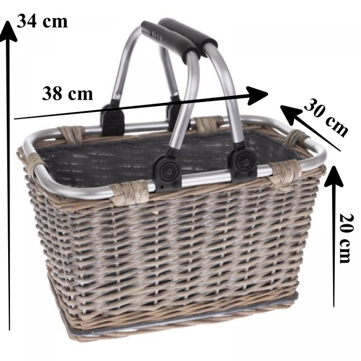 Rozmery v cm (ŠxHxV): 38 × 30 × 20 cm i s úchytkami je celková výška 34cm.